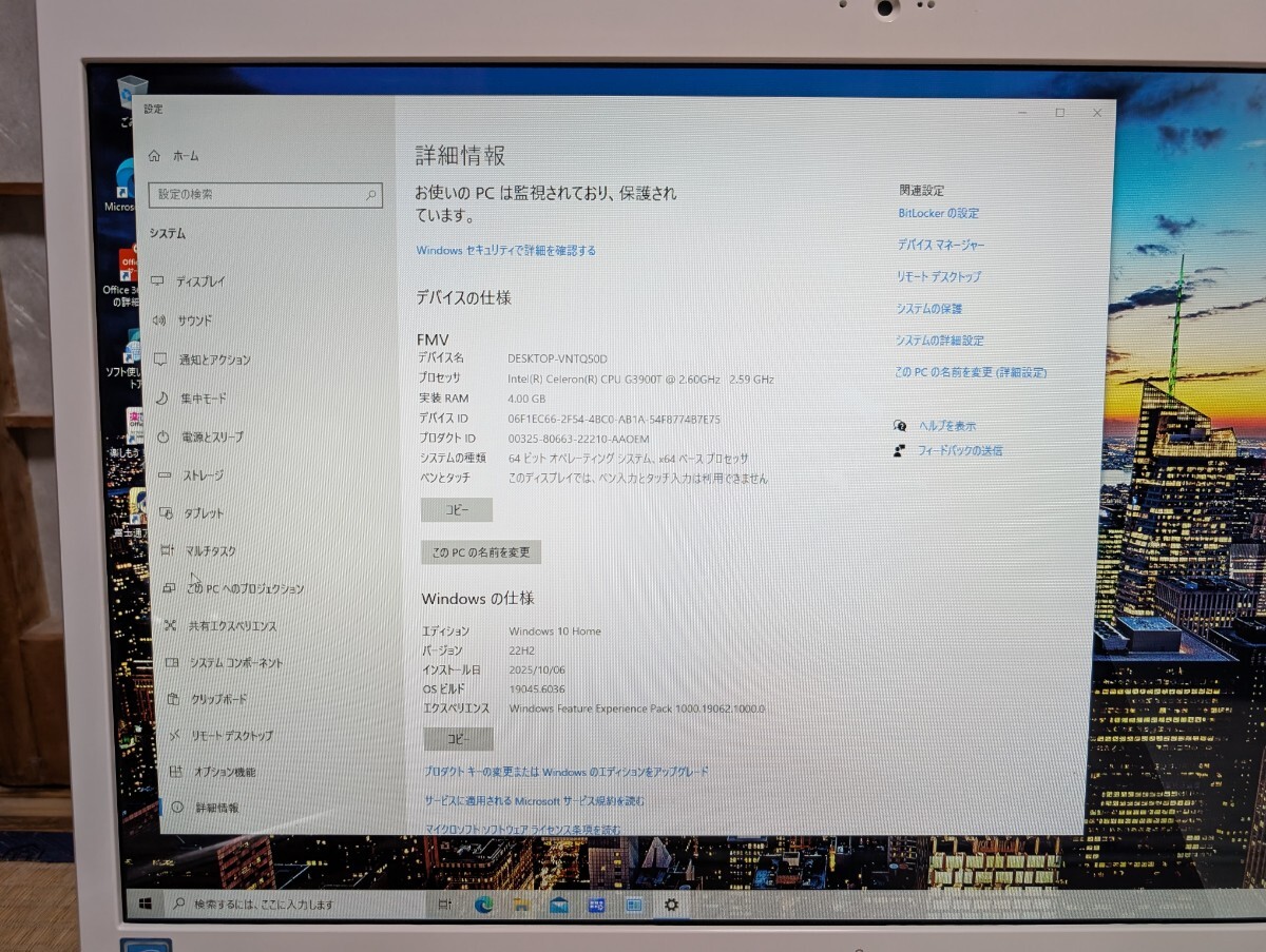 富士通 ESPRIMO FH52/A3 (23型Full HD液晶/Celeron G3900T/4GB/1TB) FMVF52A3W 中古です。
