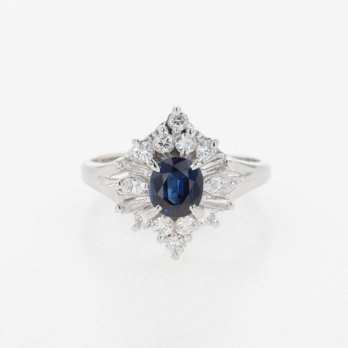 サファイア デザインリング プラチナ 指輪 メレダイヤ リング 9号 Pt900 サファイア ダイヤモンド レディース 【中古】 |