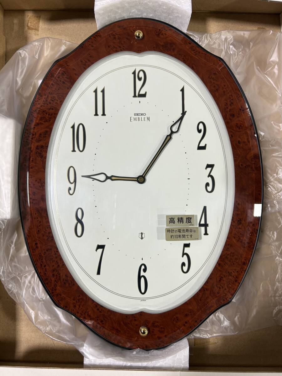 【未使用 美品 箱入り 取説あり】SEIKO EMBLEM HS358B セイコー エンブレム 掛け時計 木枠 日本製 Made in Japan