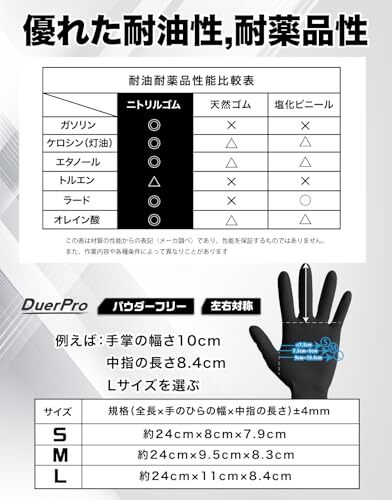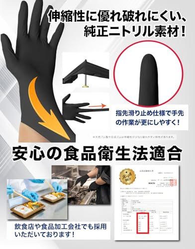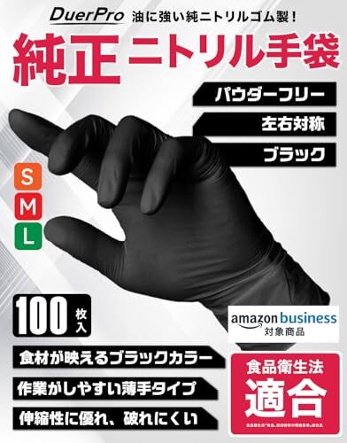 [Duerfusa] ニトリル手袋 【食品衛生法適合】 使い捨て手袋 黒 粉なし 100枚/1000枚 調理 ニトリルグローブ 左右兼用 ゴム手袋 料理 キッチン 掃除 強耐久 強伸縮 耐薬品 スマホ対応 法人歓迎 ブラック