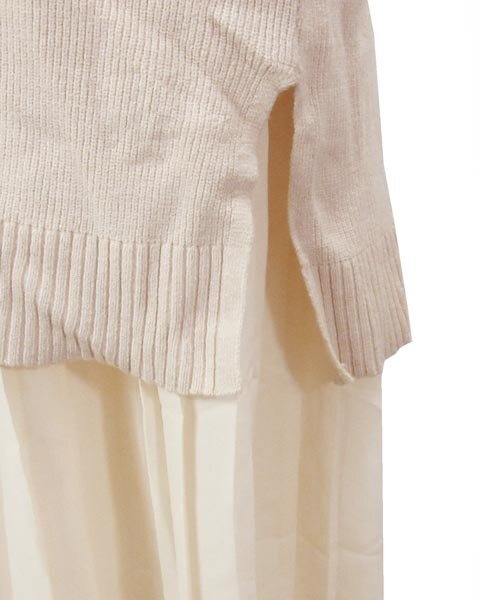 ニットワンピースとキャミワンピースのセットアップ。大人の甘目スタイルが楽しめます。優しい薄ピンクベージュで、着やすいお色目。春先や秋口におすすめです。 |