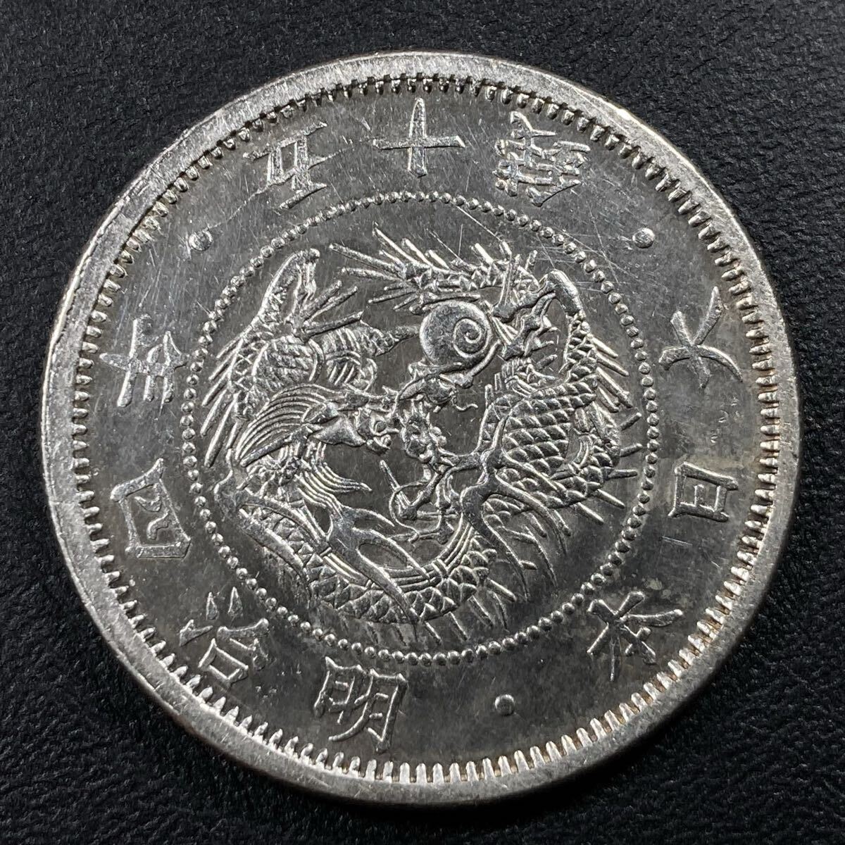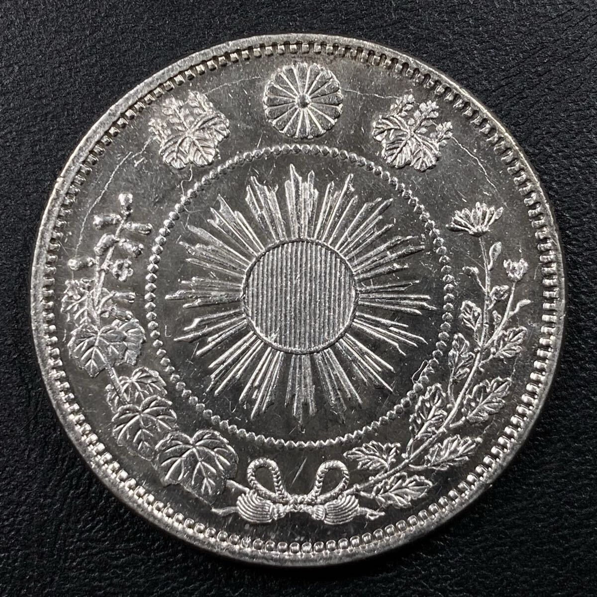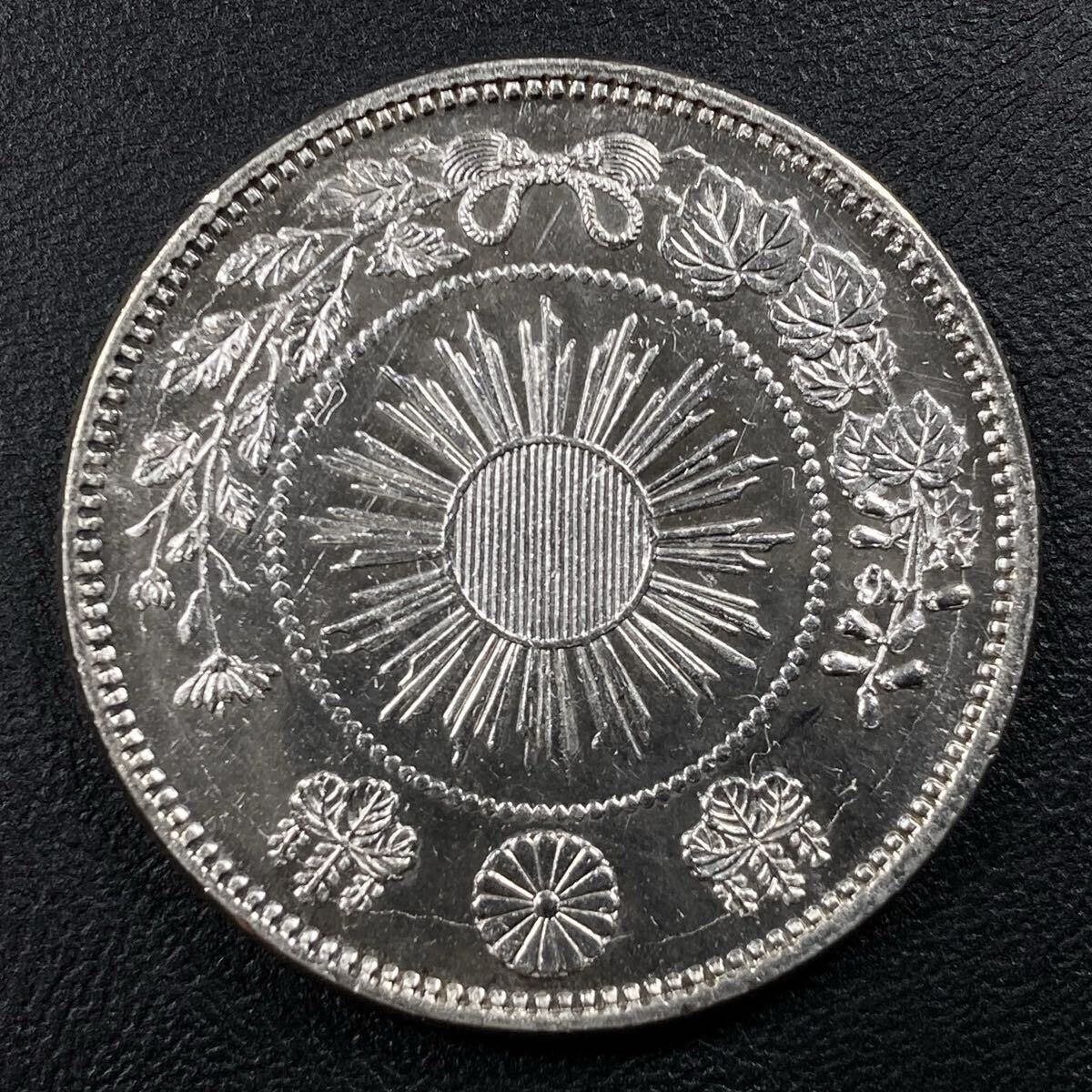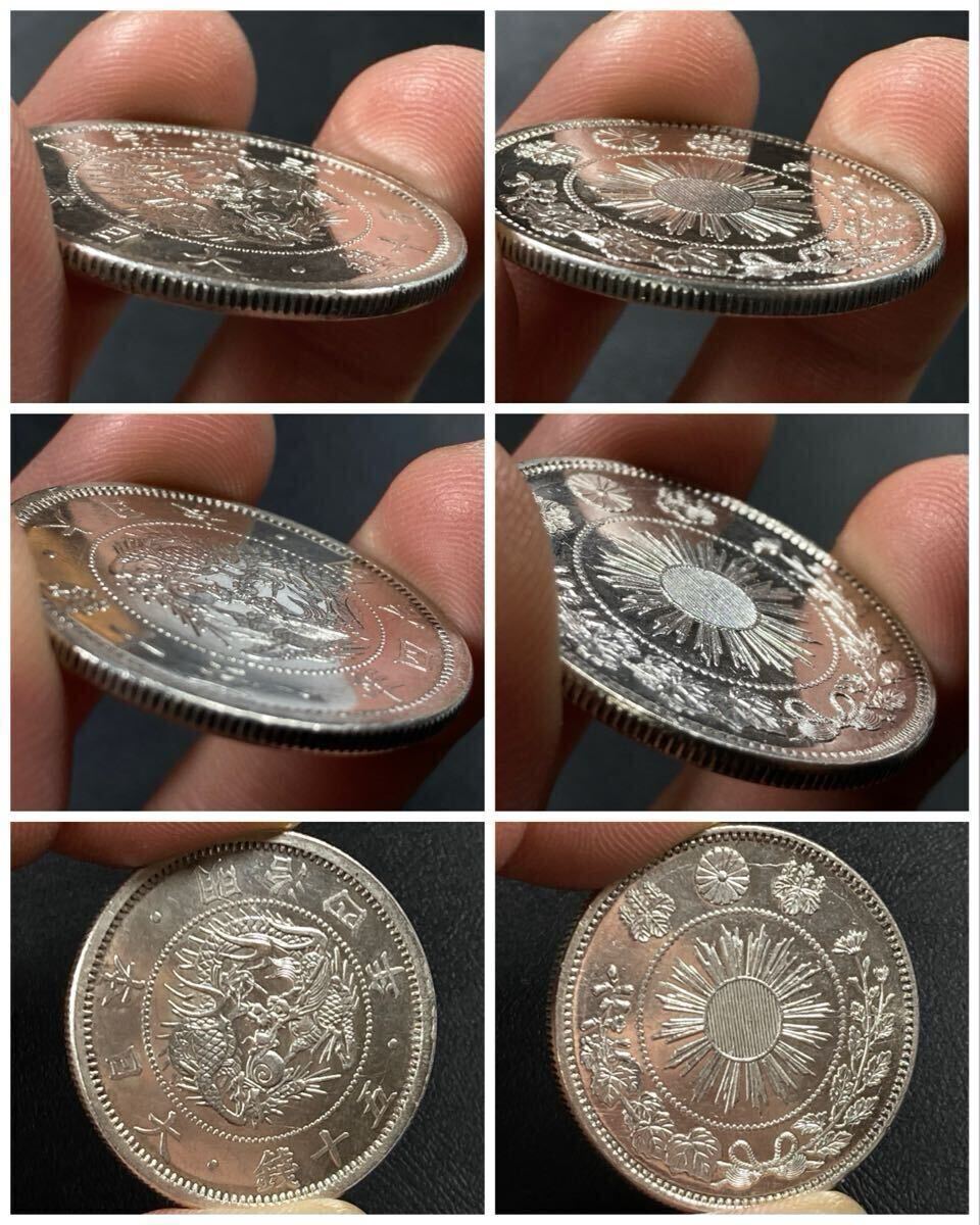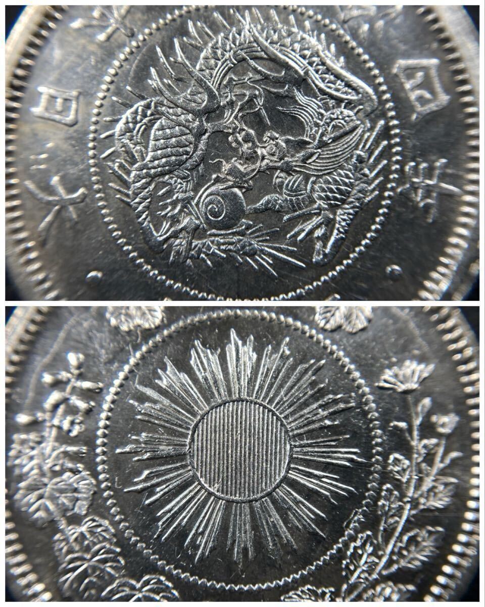 こちらは入手時極美品の旭日竜小型50銭銀貨の明治4年で面部平打品になります。