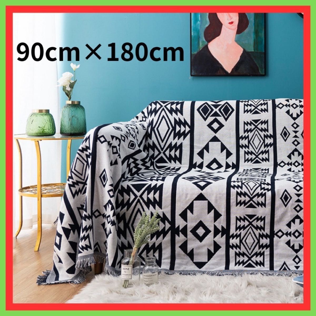 ・お部屋のアクセントにぴったりのネイティブ柄ラグ、またはブランケットです。