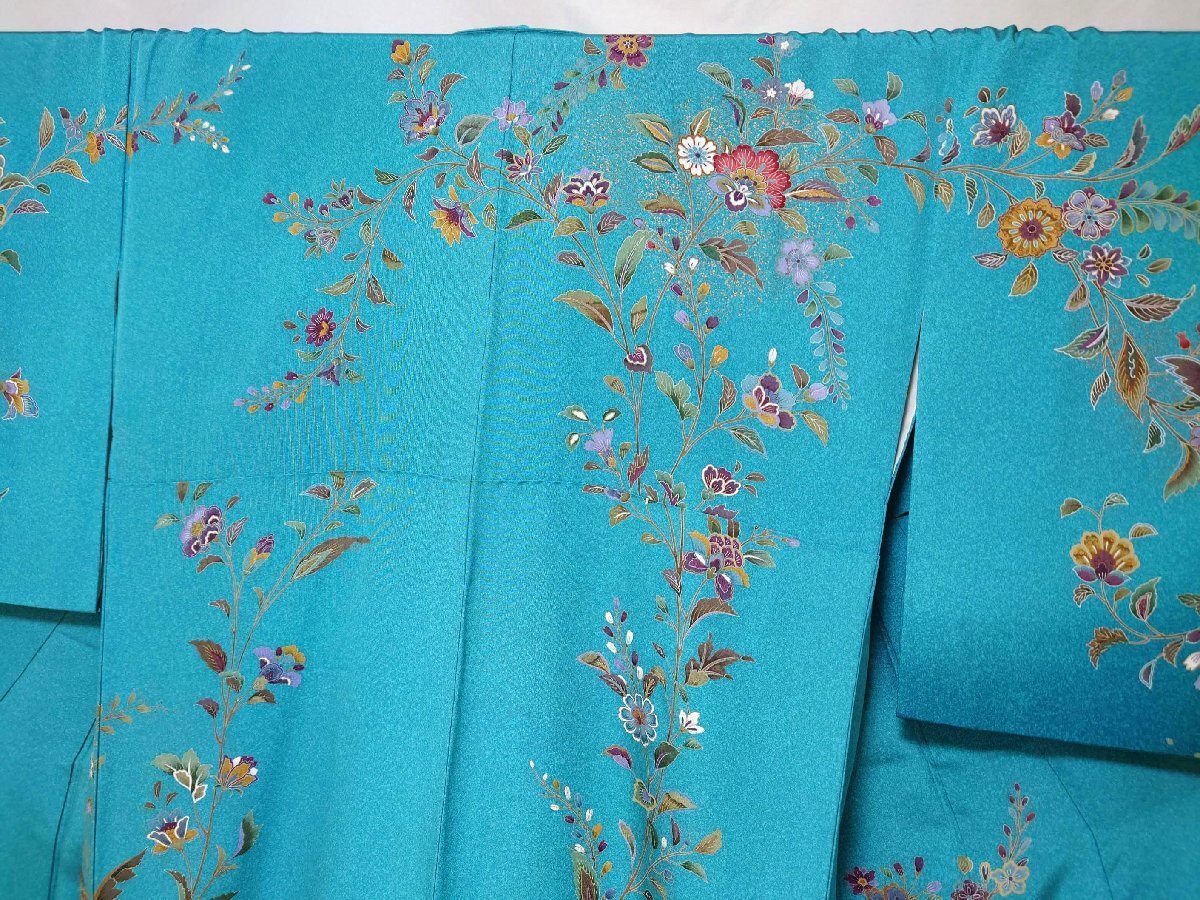 唐花文様を華やかにあしらった、美しい訪問着のご紹介です。 裾まわりから上前、肩にかけて流れるように配された唐花文様は、 色とりどりの花々や葉が重なり合い、優雅で華やかな印象を与えます。 細部に至るまで丁寧に描かれた文様には、鳥の姿もあしらわれ、 まるで絵画のような奥行きと豊かな表情が感じられます。 唐花文様は異国情緒を漂わせる格調高い意匠でありながら、 全体としては軽やかで華やかな印象に仕上げられており、 晴れやかな場にふさわしい気品を備えています。 祝席や式典などのフォーマルな場面はもちろん、華やかなお集まりの席にもおすすめの一枚です。 生地にはしっとりとした艶があり、美しい文様をより一層引き立てています。 目立った難も見られず、美品として気持ちよくお召しいただけるお品です。 ※撮影時部屋の照明によって画像の色に若干の差がございます。 色味に差がございますことをご了承のうえご検討下さいませ。 ※個人保管品のため記載のない僅かな難がある場合がございます。 そのような理由でのキャンセルはお受けできませんので、ご了承の上ご検討お願いいたします。 |