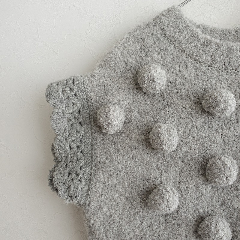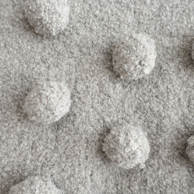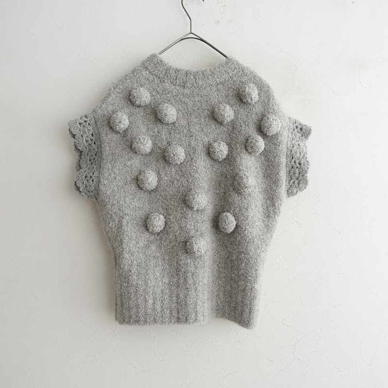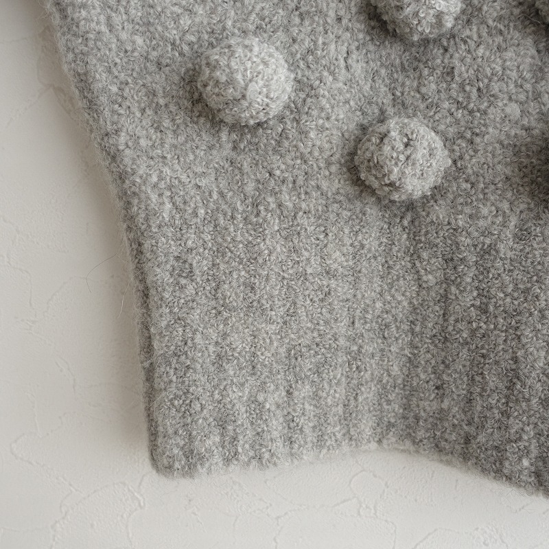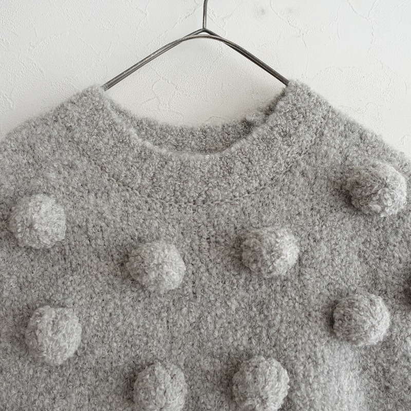 | mina perhonenのlumi palo アルパカポンポンニットプルオーバーです。カラーはグレーで、もこもことりたループヤーンのニット素材で仕立てられています。プルオーバータイプの着脱で、袖はレース編み、大きなポンポンがあしらわれたデザインです。定価(メーカー希望小売価格) 49,500円の商品です。 |