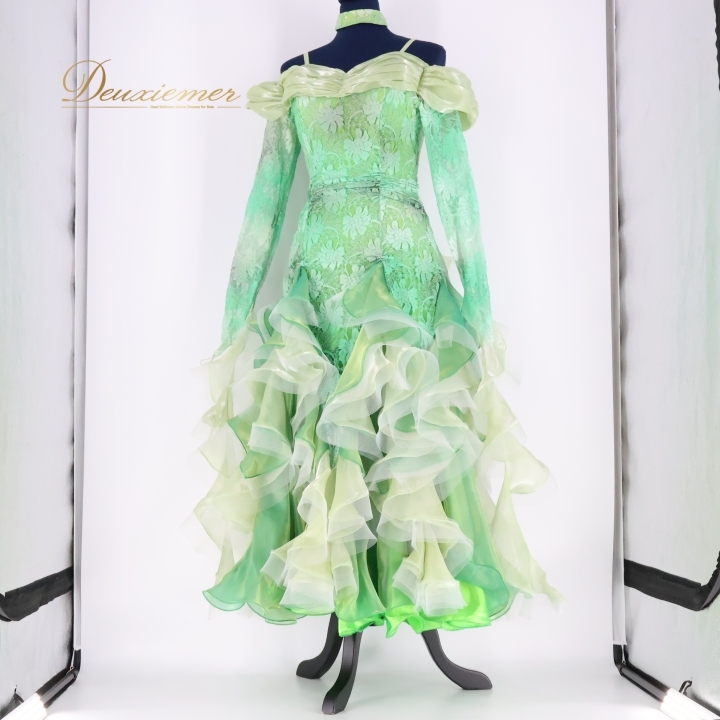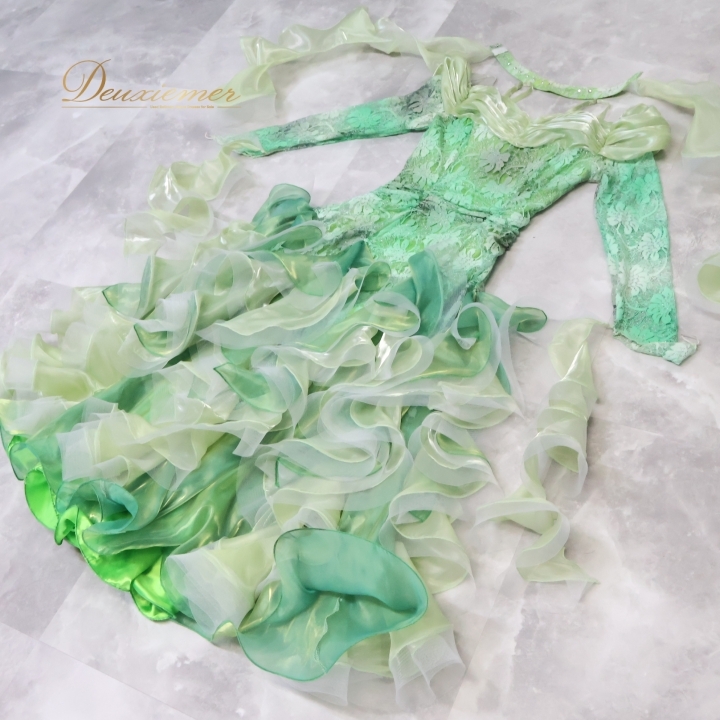 | 【商品名】社交ダンス 衣装 ワンピース ドレス 【サイズ】サイズフリー表記 平置き実測:総丈約126cm(裾~肩部まで)、身幅約40cm、ウエスト約30cm ※実測の為、多少の誤差はご了承ください 【仕様】 ・背面ファスナー仕様 ・若干の伸縮性有り ・胸パッド無し 【品質表示】 ナイロン100% ------------------------------------ 【ポイント】 ▽prima boutique プリマブティック ▽綺麗なグラデーショングリーン系の色味 ▽フリルがおしゃれなドレス ------------------------------------ 【撮影時使用トルソー】 種 類:女性用トルソー9号 (一般的に使用されるサイズです) サイズ:肩先~床約135cm(身長約160cm)、肩幅約37cm、バスト約88cm、ウエスト約66cm、ヒップ約89cm |
