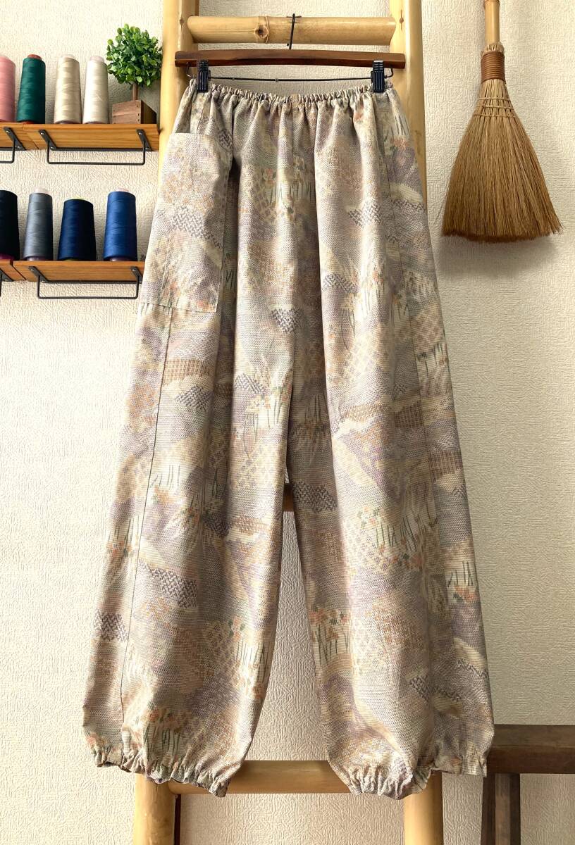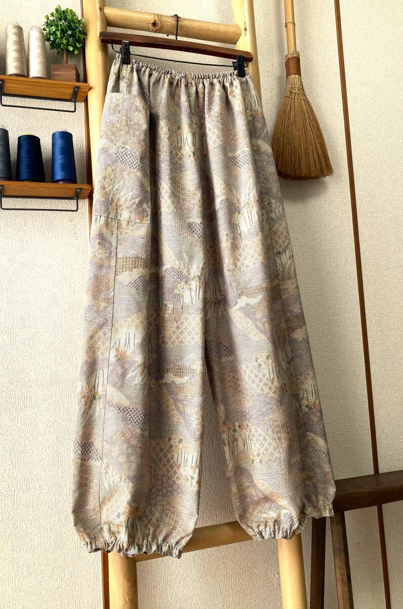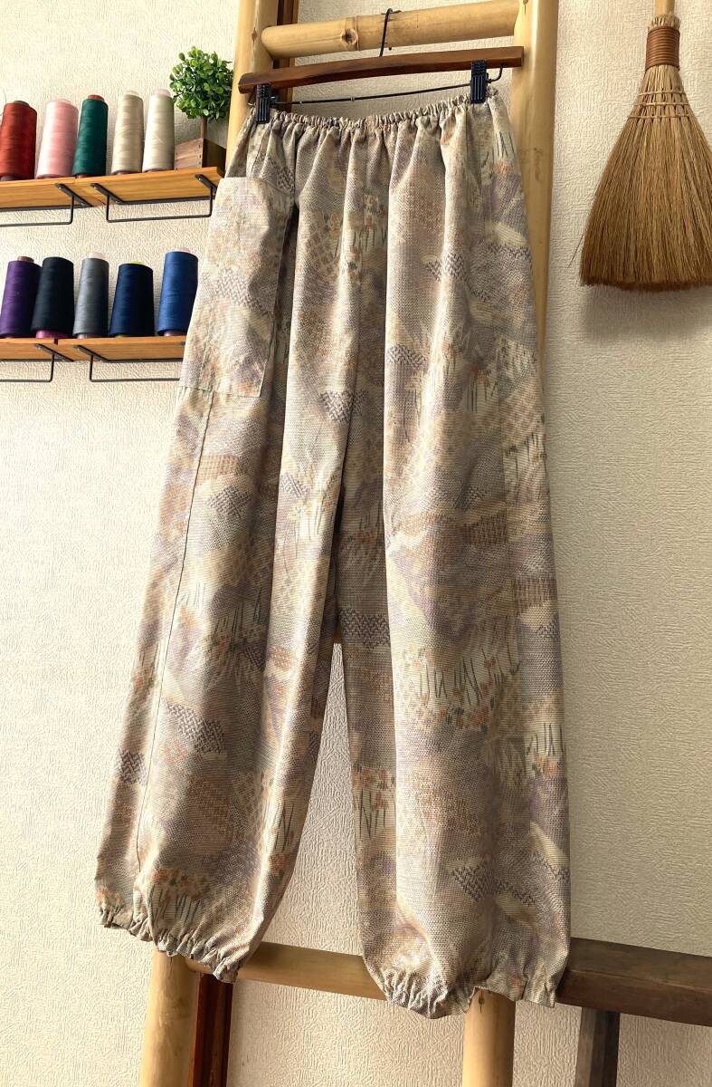 ![]() | 商品説明 ✽鎌倉まるか堂✽ ~もんぺ風~ ゆったりらくちんパンツ ~作品詳細など~ ✽総丈97cm 股下67cm 渡り幅38㎝ 裾幅19cm ✽ウエストサイズ 60㎝~120㎝ ・目安として、50㎝~100㎝=S~M 55㎝~110㎝=M~L 60㎝~120㎝=L~LL以上 ✽生地…絹。普通厚、光沢ややあり、程良いシャリ感とややあるハリ感、程良い柔らかさで手馴染み良いとてもしっかりした上紬生地。 ・(無理にアイロンを掛けず洗いざらしのままの風合いでも穿き愉しめます!) ✽色柄…蒸栗色を基調に沢山の秋色で彩られた山と花を中心に伝統和柄も組み入れそれらを切嵌めたデザイン。かなり巧妙な絵柄! ・() ✽美点…素朴な自然色ながらも緻密で複雑ながらも山と花はきちんと主張させた切嵌め絵柄の風流さも備えた逸品です! 気軽に洗濯出来て扱い易いのも魅力です! ・(しっかり水通しをした生地。裾は程良く絞ったゆったりまるっこいシルエット&裾のひらひらが大きめです♪) ✽特に浅くも深くもない一般的な深さの股上です。 ・裏地はついてませんので必要に応じてぺチやタイツなどのアンダーを併用して下さいませ。 ・アウトポケットが一つ付いてます。 ・ウエストはゴム2本、裾はゴム1本、ともに調節穴有り。 ・お直しは無料(裾上げなど簡易なお直し)ご連絡時にお願いします。 支払方法 ✽ヤフー簡単決済 発送方法 ✽ゆうパケット:追跡アリ(場合により定形外郵便) ✽発送は神奈川県からです。 注意事項 ・解き生地の場合は染み、焼け、解痕、折皺等ある場合がございますのでご理解をお願い致します。 ・商品はノークレーム・ノーリターンでお願い致します。 ・評価内容に問題のある方のご入札は取り消す事もございます。 ・質問はお気軽にお尋ねくださいませ、出来るだけ詳しくお答え出来るよう努めます。 ✽☆☆☆✽☆☆☆✽☆☆☆✽☆☆☆✽☆☆☆✽☆☆☆✽☆☆☆✽☆☆☆✽☆☆☆✽☆☆☆✽☆☆☆✽☆☆☆✽☆☆☆✽☆☆☆✽☆☆☆✽☆☆☆✽☆☆☆ ✽繊細で優美にあやなす柄や簡素単純でありながらも完成された柄など古から大事に受け継がれてきた和柄のもつ潜在能力は無限の可能性があります、 そんな和柄を活かした着物リメイクを気軽に纏い普段生活に自然と取り入れて頂けたらこの上なく嬉しく思います。和柄万々歳(*'▽') |