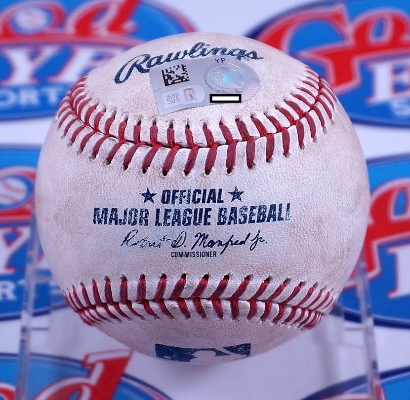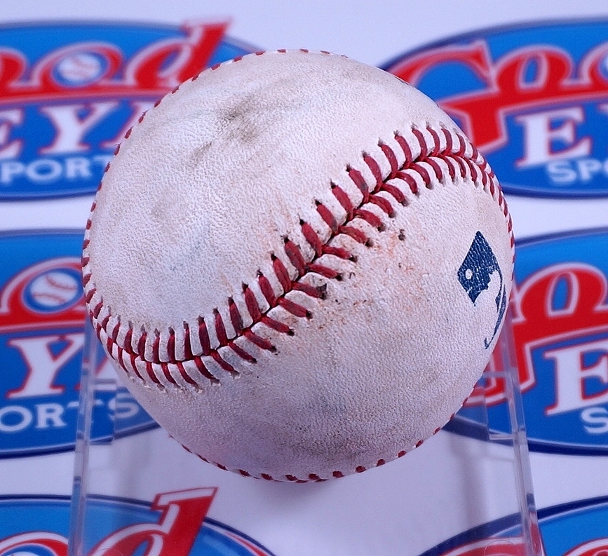 『ドジャースの佐々木朗希投手が2025年4月5日に、敵地で行われたフィラデルフィア・フィリーズで先発投手としてメジャーキャリア3度目の登板をしました。このボールは、佐々木投手が4回の裏にブライス ハーパー(BRYCE HARPER)に投げた98マイルの速球(Four-Seam Fastball)』です。佐々木投手は68球を投げ、5回途中、1失点、3安打、4奪三振の好投を見せました。ドジャースは3-1で勝利しましたが佐々木投手は勝敗が付きませんでした。 使用後、ボールはMLB機構により証明されましたので、MLB公式サイトで実使用場面を確認出来るホログラムが貼ってあります。投球スピードとピッチの種類もすべて詳細に登録されております。