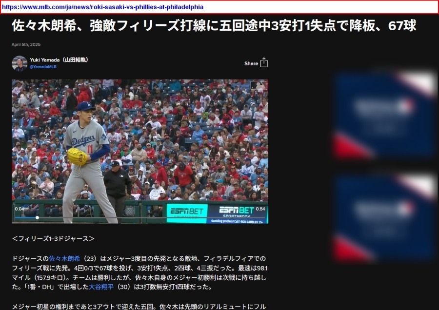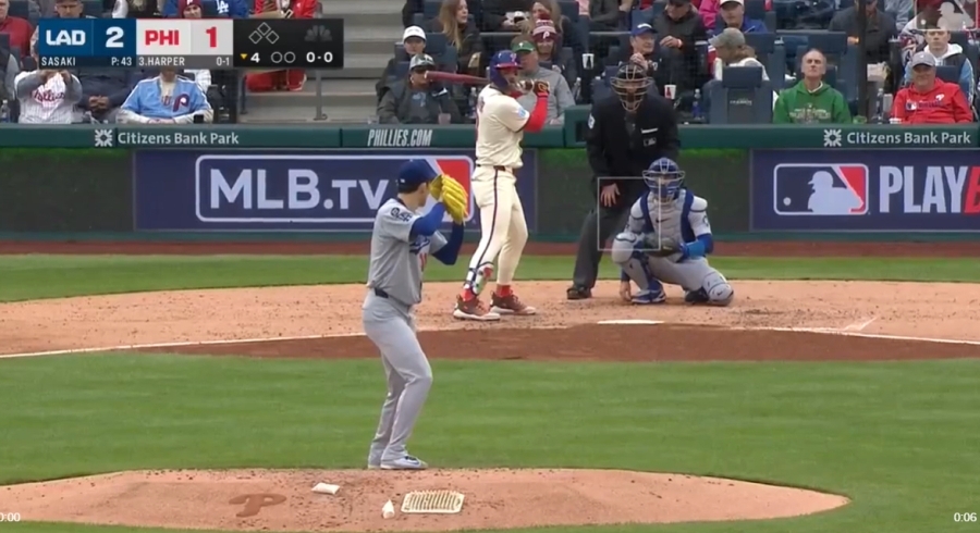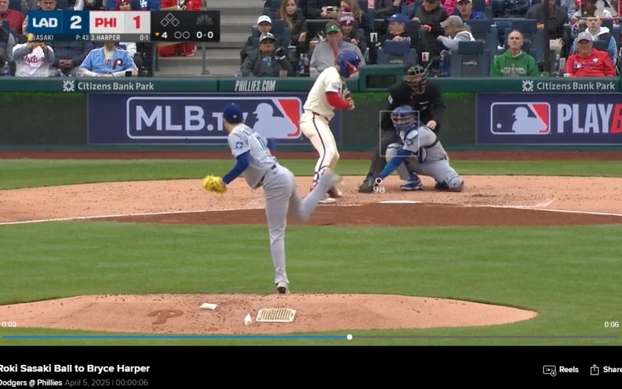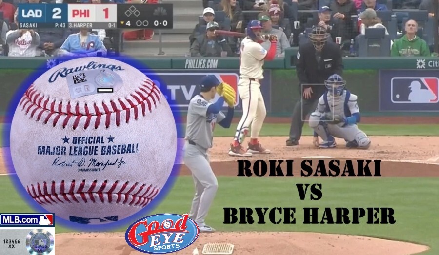 GE★佐々木朗希がドジャース3度目先発戦・2度MVP受賞BRYCE HARPER ブライス・ハーパーに投げた速球実使用投球ボール#MLB機構証明 大谷翔平