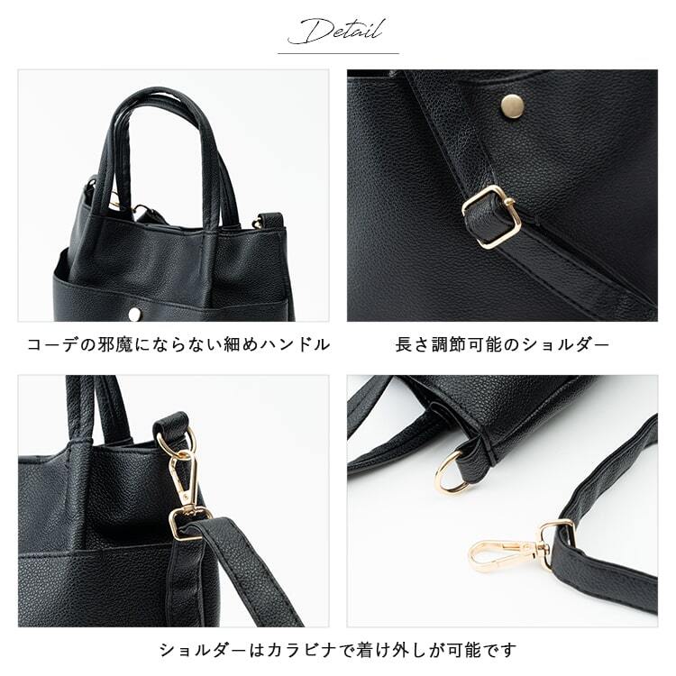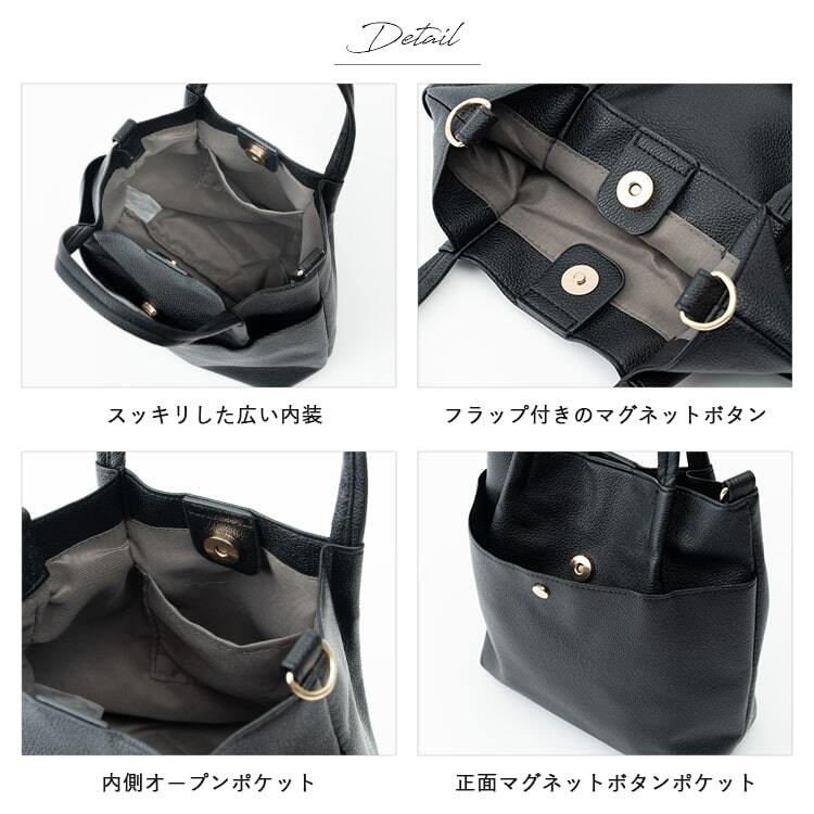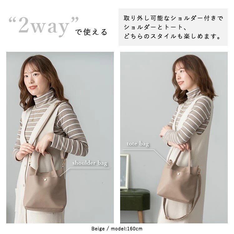 ショルダーが取り外し可能でトートとショルダーの2スタイルを楽しめるデザイン。