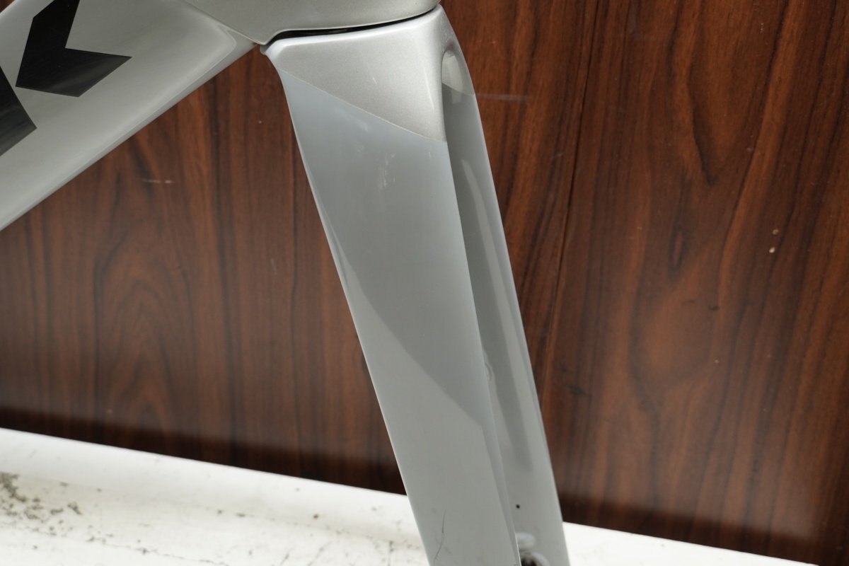 外観補足 | 全体的に汚れや塗装の傷みが目立ち強い使用感がございます。 ダウンチューブ旋回部分左側にカーボンの欠けがございます。 目立つチェーンフォール傷がございます。BB周りが黄色く変色しています。 シートチューブ左側に大きな塗装剥げがございます。 シートチューブ後ろ側に擦れ傷がございます。 ハンガーが社外品のダイレクトマウントタイプに交換されています。 シートポストはカーボンレール用のセッティングです。 機械式・Di2両対応です。 付属のハンドルはクランプ傷が目立ちます。 フォーク右側に大きながり傷がございます。 販売証明書を発行致します。 ※お送り先とご希望名義が異なる場合はオーダーフォーム備考欄に明記して下さい。 ※詳しくは画像をご覧くださいませ。 |