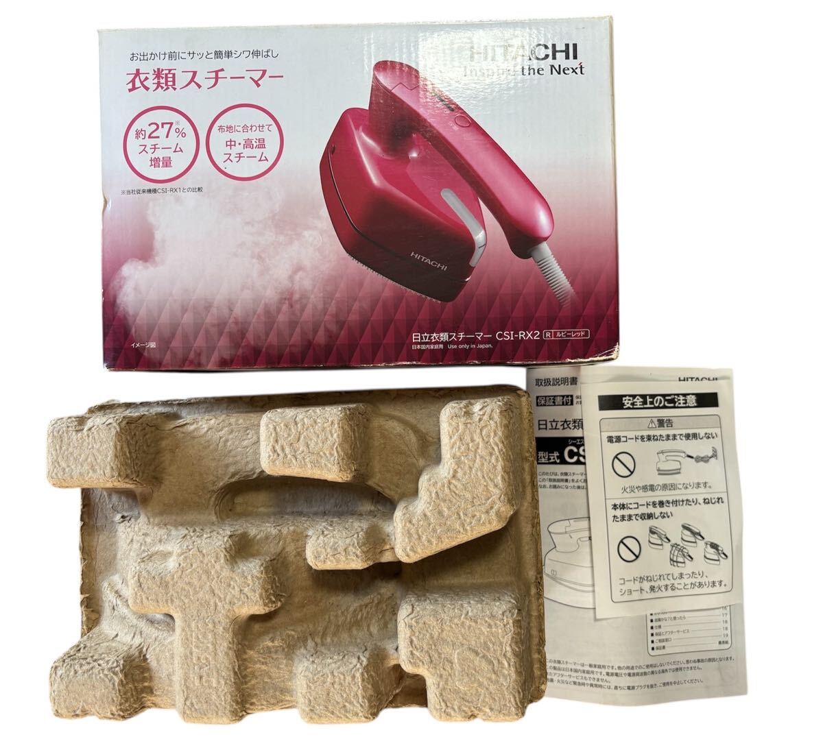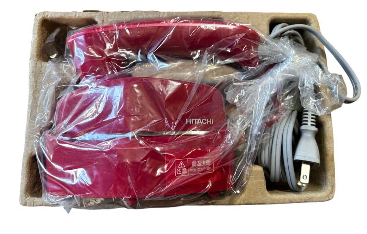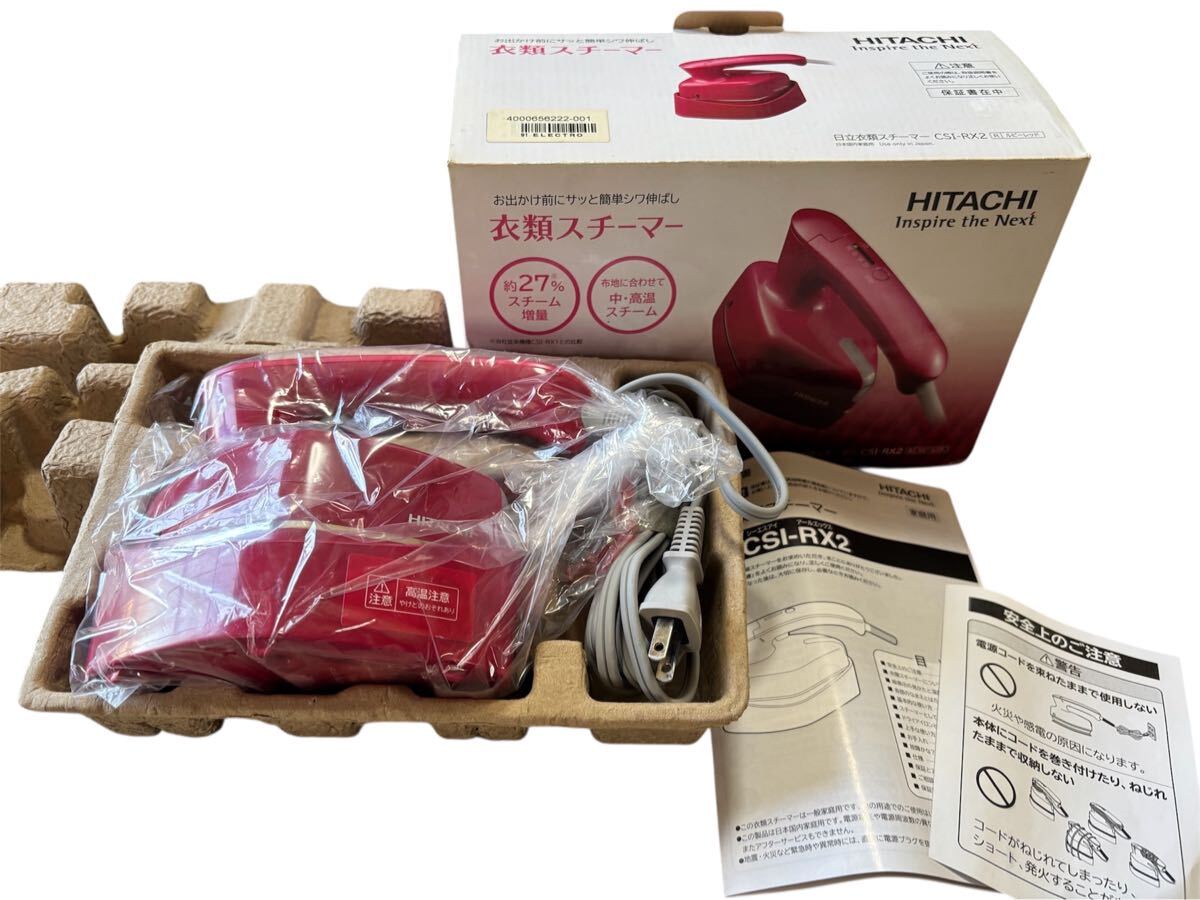1円スタート: HITACHI ヒタチ 衣類スチーマー スチームアイロン 3段階温度切替 ブラシ付き CSI-RX2 R ルビーレッド 新品未使用(w2018)
