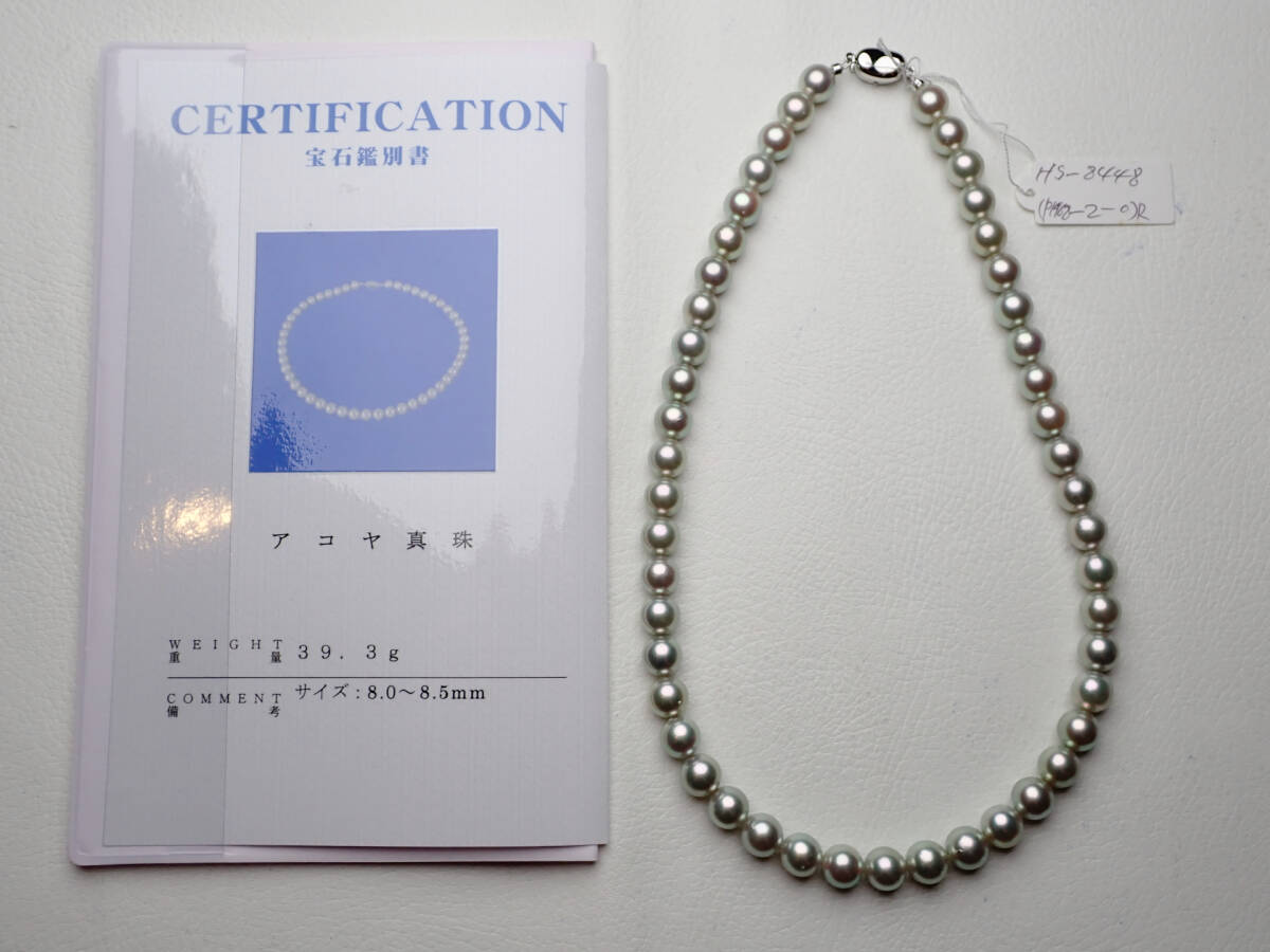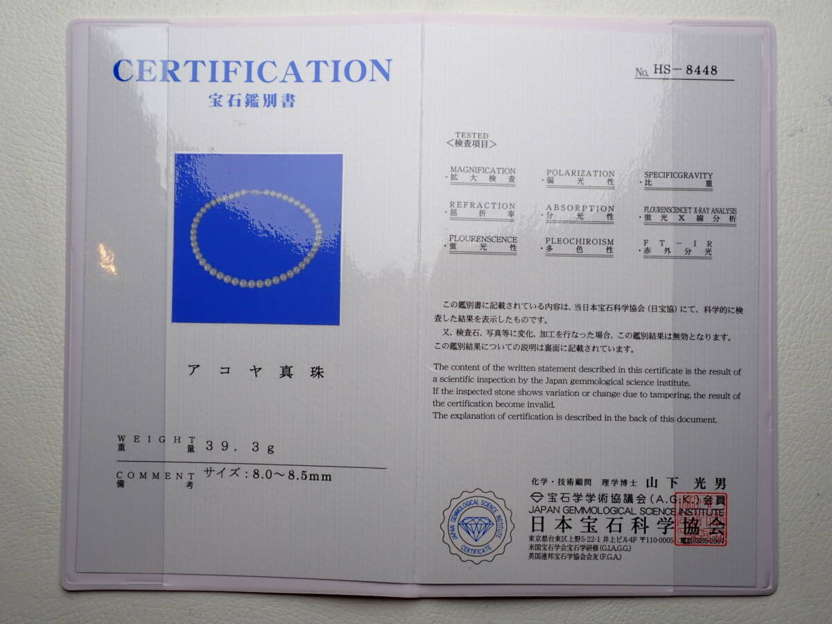 12●アコヤ真珠 ネックレス 8.0~8.5mm 39.3g 鑑別書付
