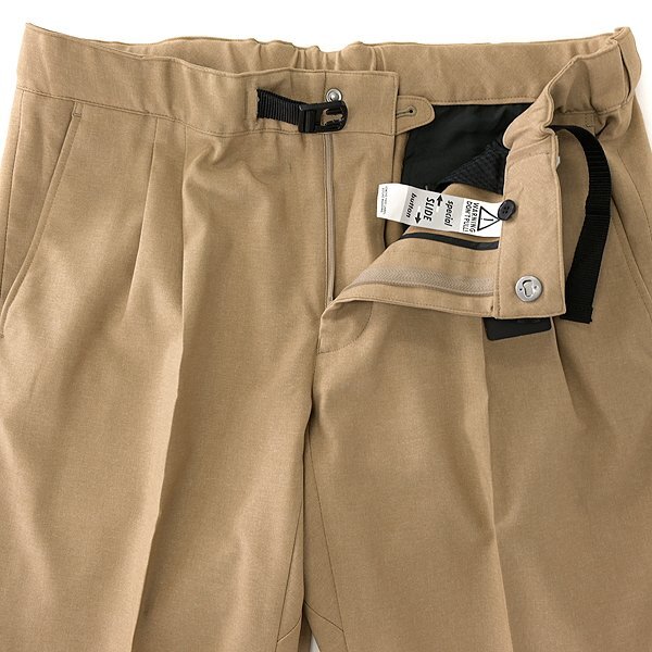ウールライクなカルゼ素材を使用したきれいめクライミングパンツです。 適度に肉厚でハリがある素材感で、ストレッチが効いているので動作性に優れ、表地表面は撥水加工によって水や汚れに強く、裏面は微起毛仕上げで温かな穿き心地に仕上がっています。 ウエストゴム&ウェビングベルト、股下ガゼットクロッチのクライミングパンツらしいディテールと、スラックスの仕様であるフロント2プリーツ、センタークリース、裾ダブル、テーパードシルエットを掛け合わせて、アクティブなのにきれいめなデザインに仕上がっています。 【デザイン】 ・2タック ・ジッパーフライ ・テーパードシルエット ・裾ダブル仕上げ ・ウエストにゴム入り ・ウエストにウェビングベルト入り(取り外しできません) |