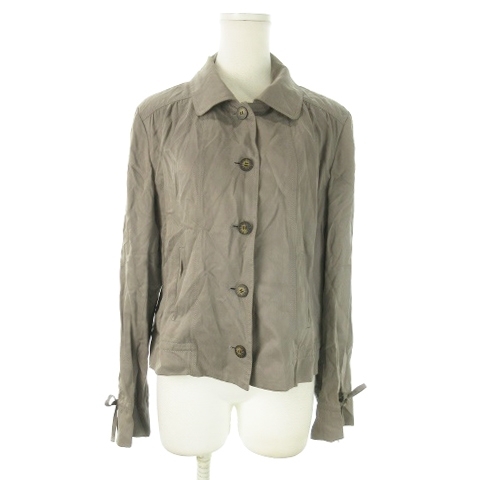 レリアン Leilian ジャケット ステンカラー リボン 薄手 11 茶 カーキ /AO4 レディース