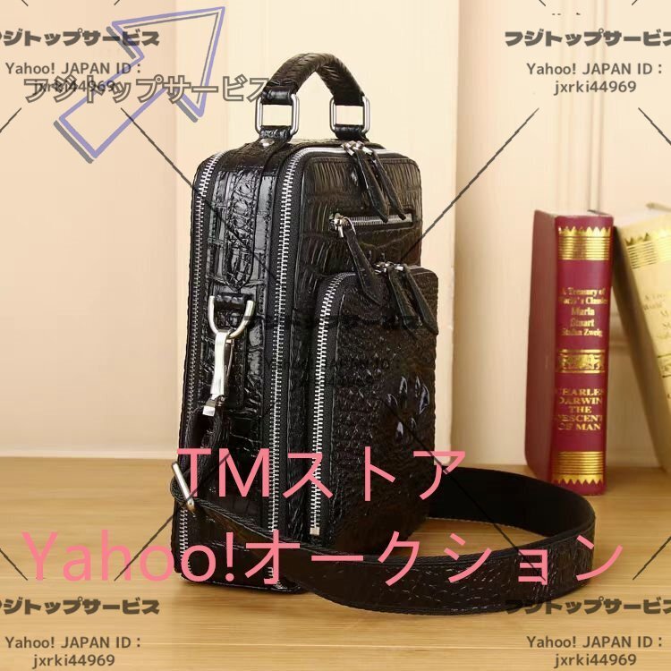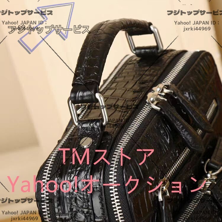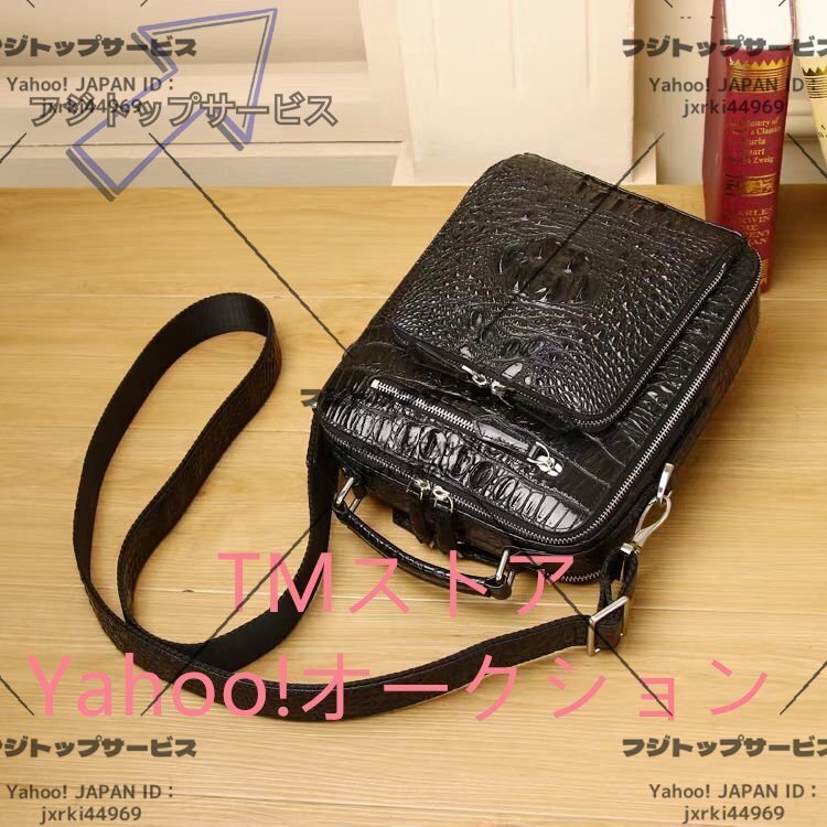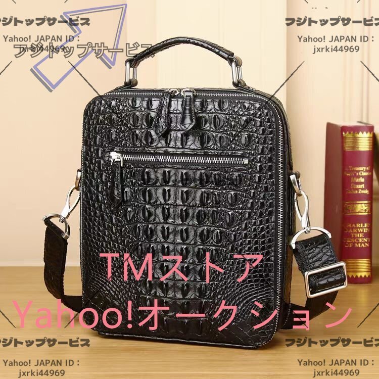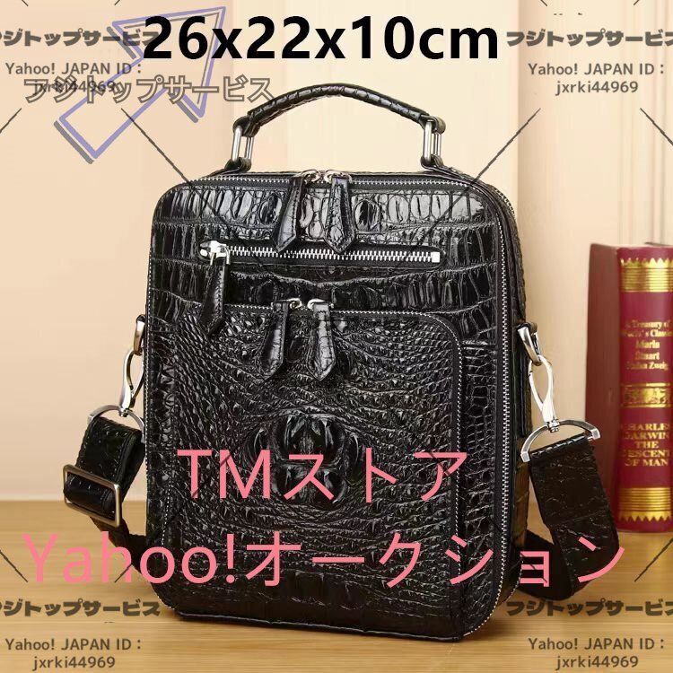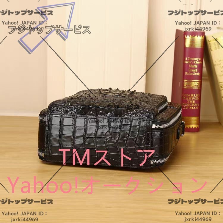 数あるオークションの中からご覧頂き、本当にありがとうございます♪当方、お客様が安心して取引が出来るよう真心込めて【商品詳細】★状態:新品未使用●素材:外側:クロコダイル革内側:牛革●カラー:ブラック●サイズ:26×22×10cm※こち