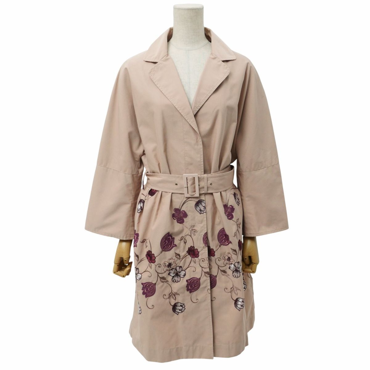 GS3445☆ヘルノ HERNO フラワーエンブロイダリー ベルテッドコート ハーフコート スナップボタン 花柄 刺繍 ピンクベージュ系 サイズ40 | |||