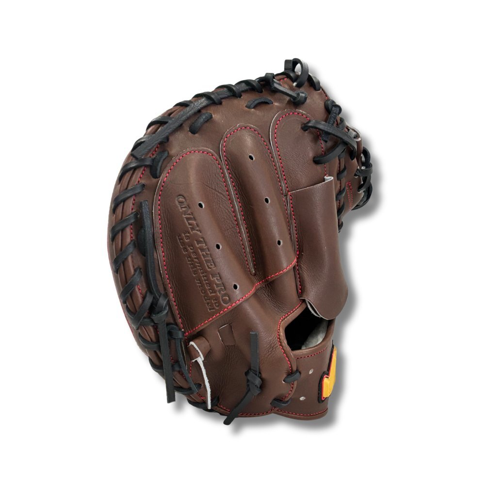 【このミットの大きさの目安】★上記表示の長さはヒンジ部の端からウエブ先端まで捕球面に沿っての寸法です。 ※天然皮革のため、革の伸び等で多少誤差が生じる場合もございます。 ■大きさの基準 ・29cm…少年用標準 30cm…小さめ 31cm…中間 32cm…大きめ ・弊社取扱いミットの大きさを基準にしております。 ・ミットの形状によって見た目の大きさの印象は変わります。基準は目安としてお考えください。 |