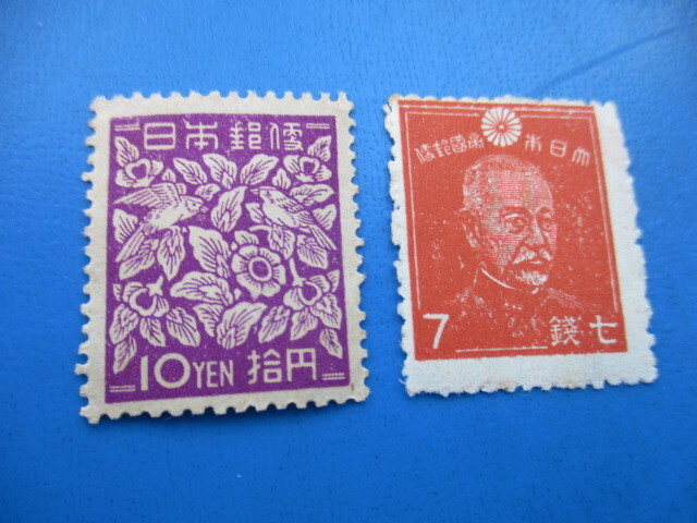 らでん模様と東郷元帥7銭 未使用です。裏糊あります。