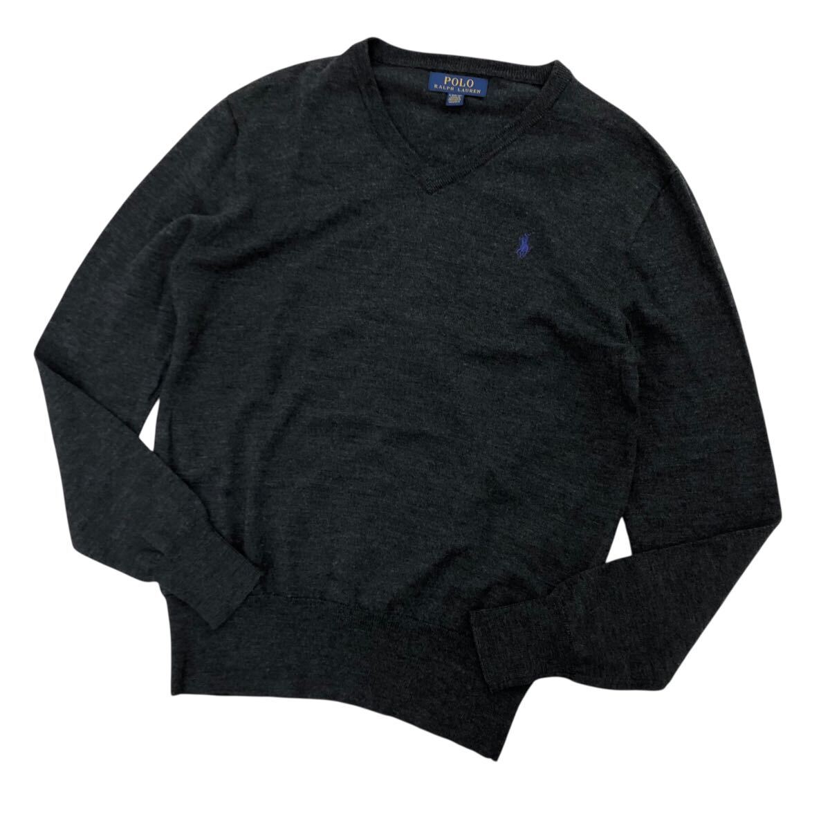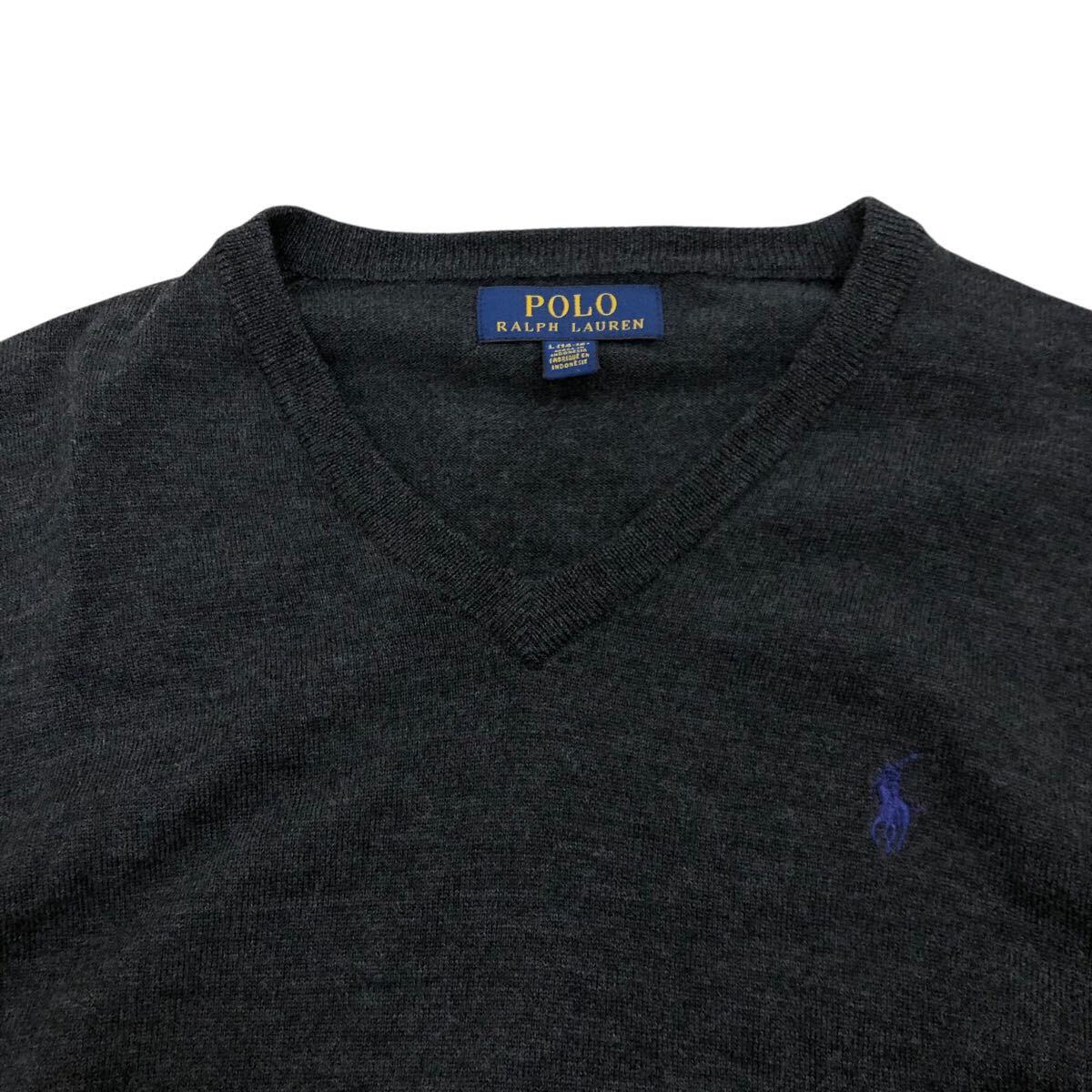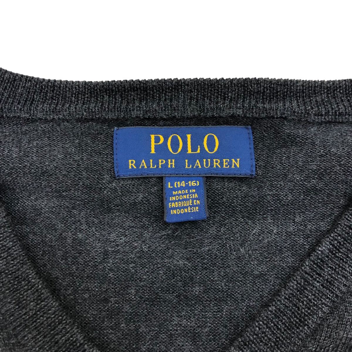 10NK006-59 POLO RALPH LAUREN ポロラルフローレン Vネック ニット セーター 長袖 トップス グレー キッズ L 14-16