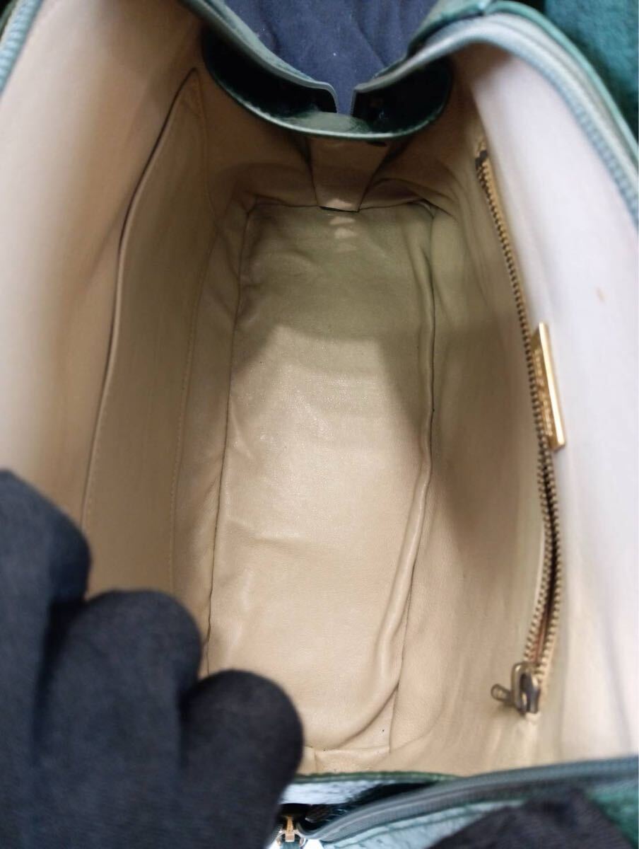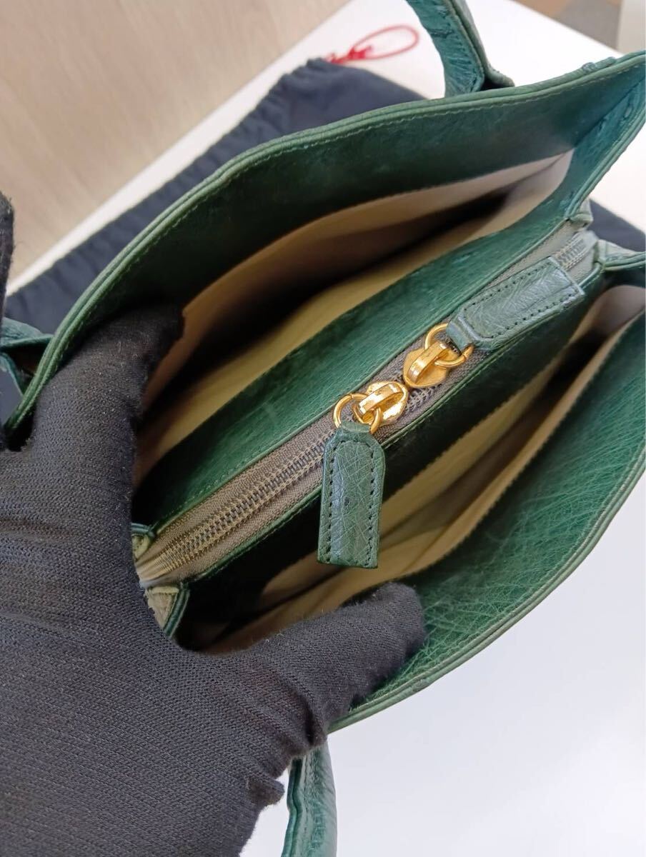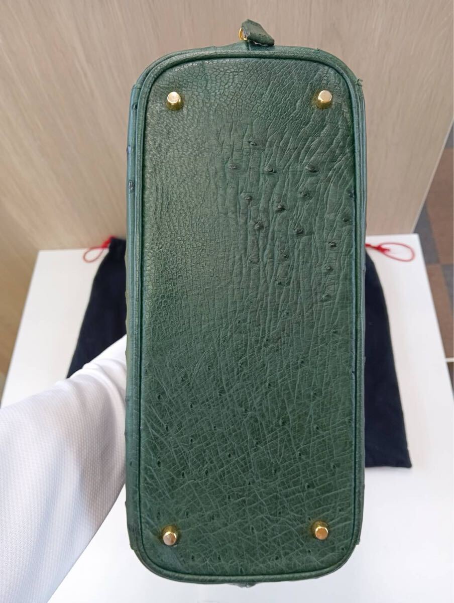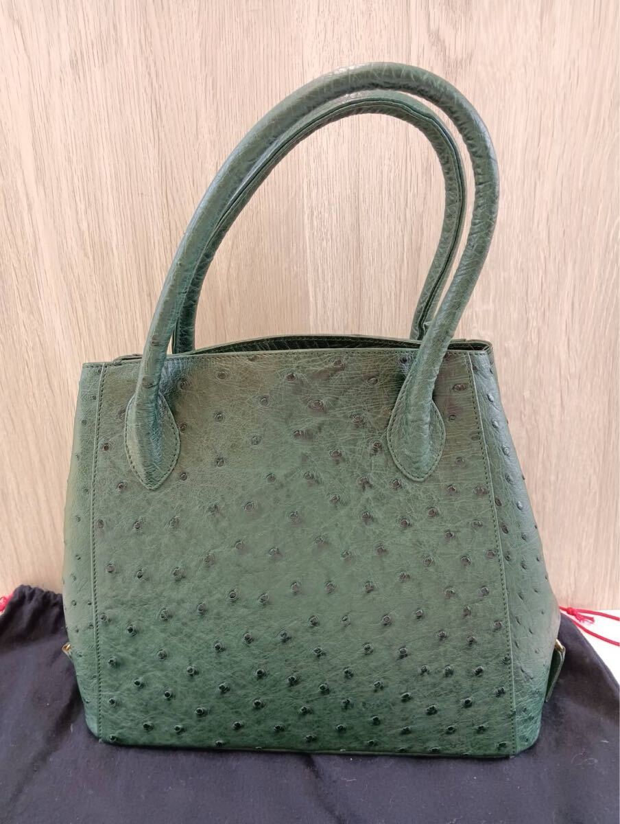 【中古品】KORE オーストリッチ レザー ハンドバッグ グリーン 本革 現状品