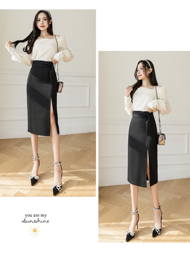 ハイウエスト タイトスカート レディース ミディアム丈 ひざ丈 カジュアル スリット 無地 スカート スカート ★2色選択可/S~XLサイズ