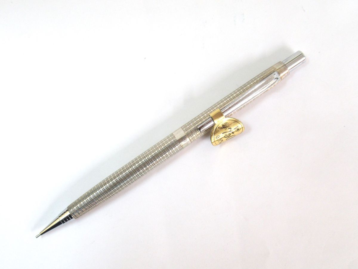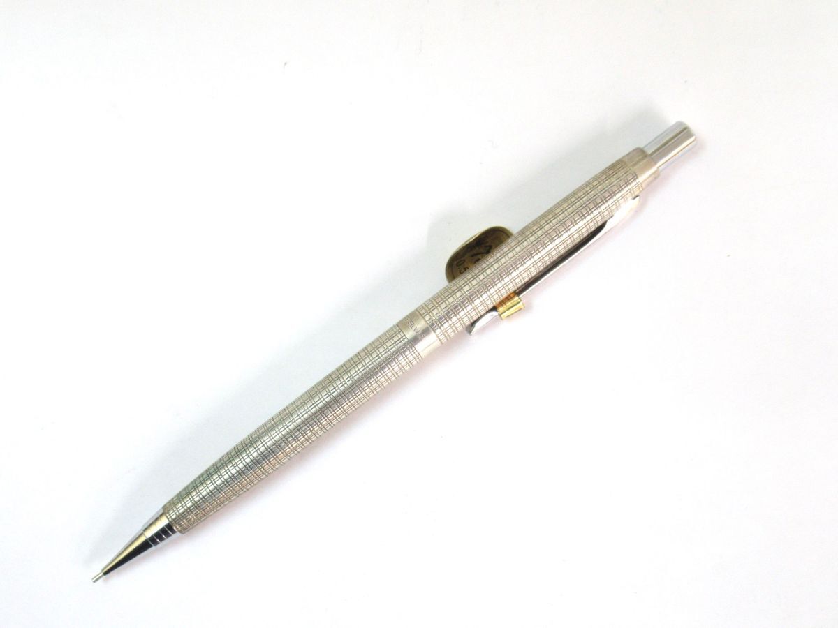 AN 5-5 長期保管品 PLATINUM プラチナ シャープペン スターリングシルバー STERLING SILVER 芯0.5mm 格子彫 廃版 筆記用具