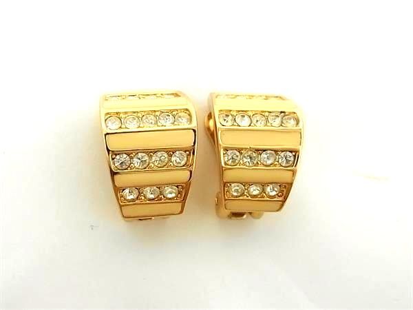 1円 ■美品■ ChristianDior クリスチャンディオール ラインストーン クリップ式 イヤリング アクセサリー レディース ゴールド系 BQ1550