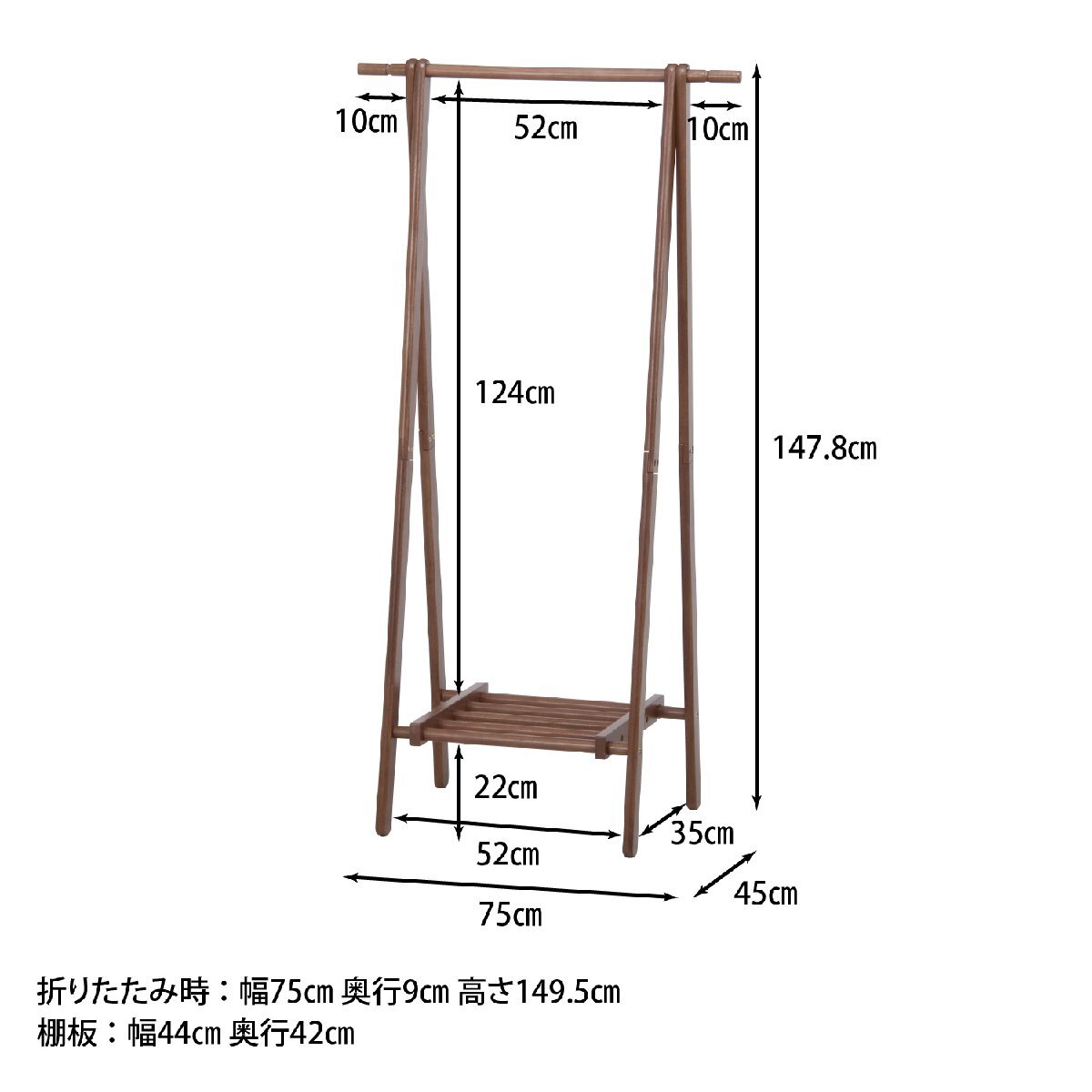 サイズ | 全体:幅750 × 奥行450 × 高さ1478mm 耐荷重(ハンガー):6kg 棚板サイズ:440x420mm 折りたたみサイズ:750x90x1495mm ※サイズ詳細はサイズ画像をご参照ください。 |