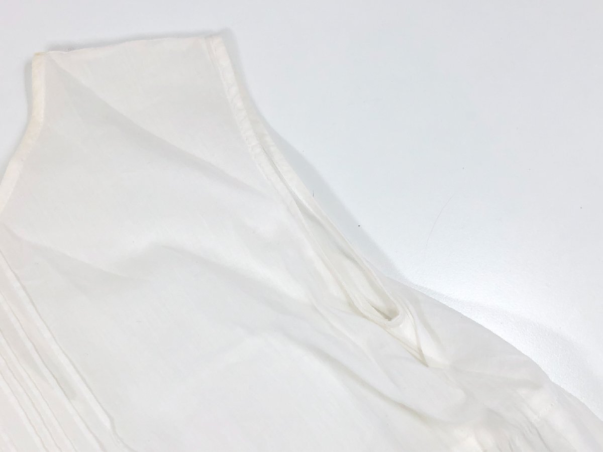 ・多少の着用感、多少のスレ、所々に薄い汚れがございます。特に気になるのは襟周りです。ホワイト系のお色味なので、御理解の上ご購入下さい。それ以外の状態は良いです。