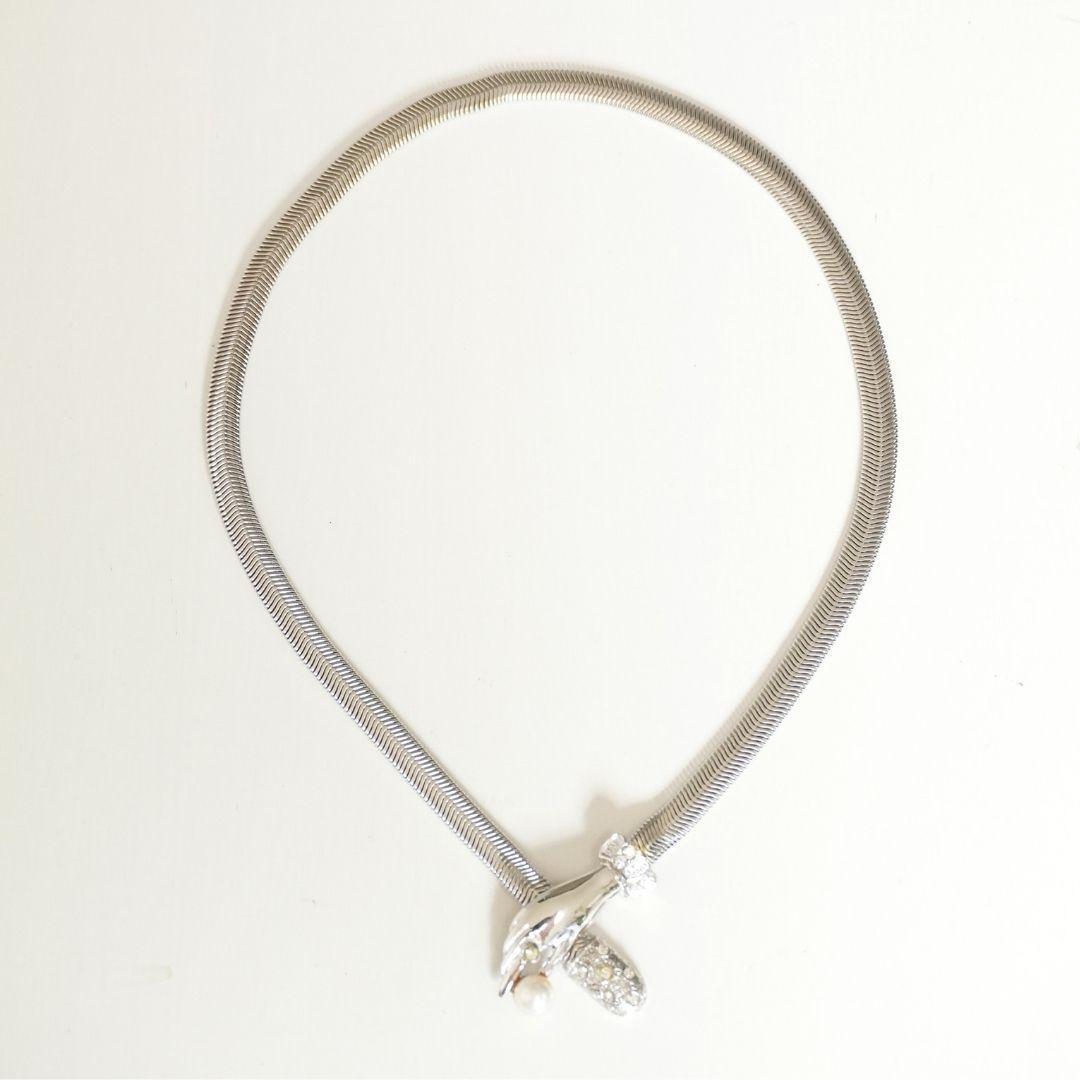 光沢のあるシルバーカラーのチェーンに、ラインストーンをあしらった手のモチーフが美しく輝きます。