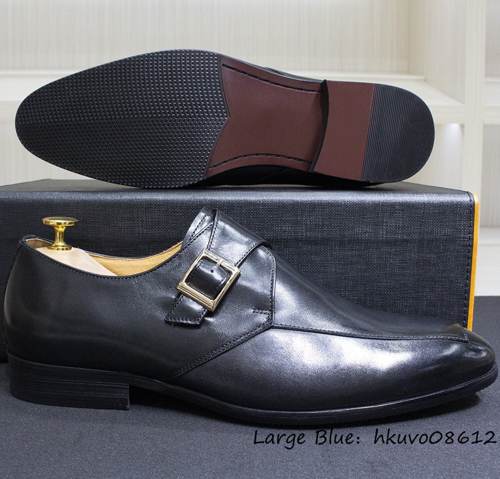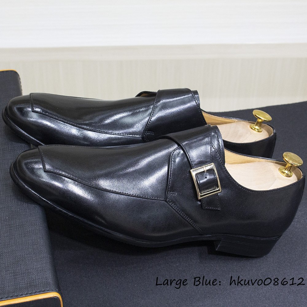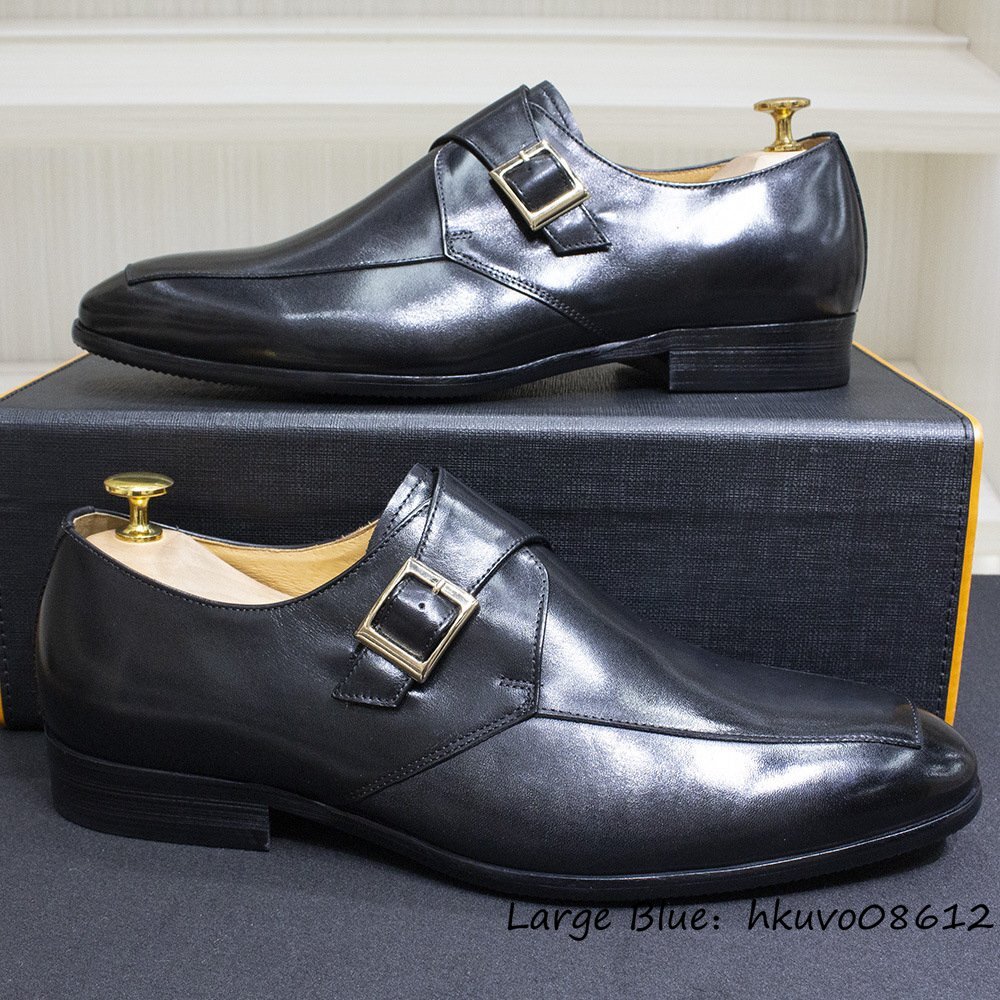定価11万◆レザーシューズ メンズ 超希少 本革 職人手作り ビジネスシューズ 紳士靴 高級牛革 モンクストラップ 革靴 新品 ブラック 25.0cm