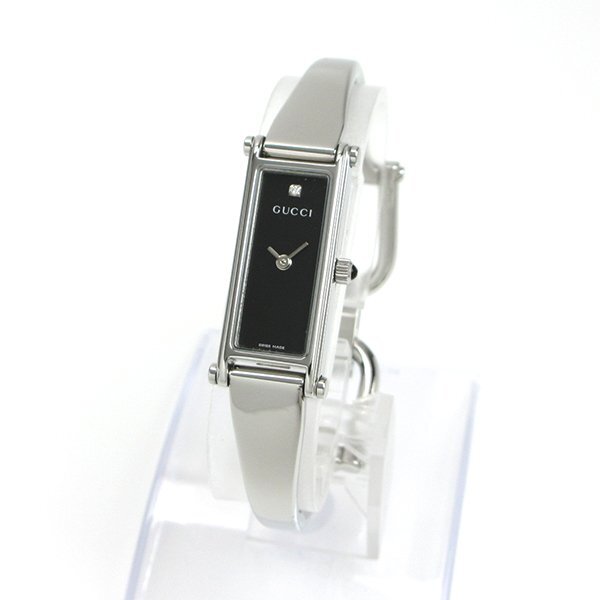 ●今回出品しております商品は、グッチウォッチの定番人気モデル「1500L ダイヤ1P クオーツ ブラック文字盤 レディース」です。 グッチの時計の中でも特に人気が高いのがこのバングルタイプの縦長モデルで、細長い文字盤には小さな指針とグッチのロゴ入り。 バングルタイプの時計は手元をかわいく見せてくれる強力なファッションアイテムで、ビジネスでもカジュアルでもパーティーでも、その日のファッションを引き立ててくれます♪ コンディションに関しましては、実際肉眼ではほぼ分からないレベルですが、文字盤のところどころや淵周りにホコリや点ゴミが見受けられます。 動作は問題無く、外装は当社にて磨き仕上げを施しておりますのでキレイな状態です。 今回も1円スタート売り切りとさせていただきますので、ぜひこの機会にお手にしてみてはいかがですか♪ 他にもさまざまな商品を出品しておりますので、お時間がございましたらぜひご覧くださいませ。 出品中一覧はこちら ※落札価格に消費税がかかりますのでご了承ください。 |