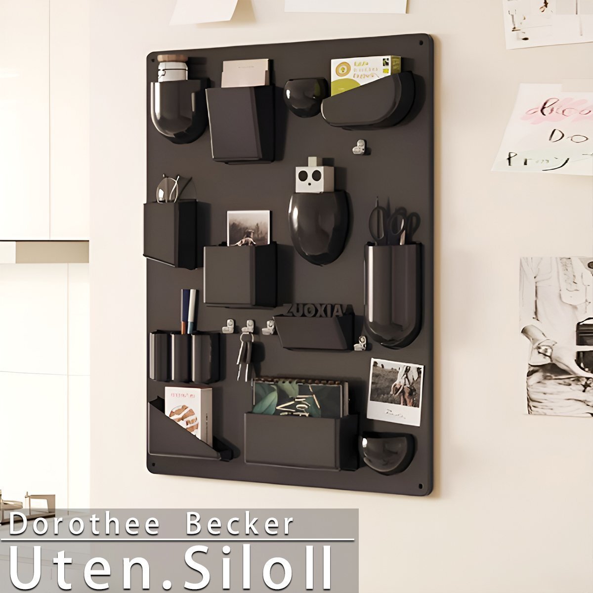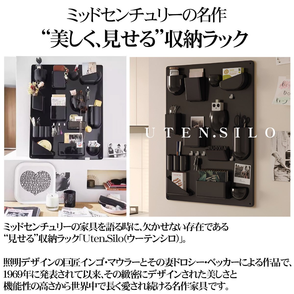 ![]() ミッドセンチュリーの名作 「美しく、見せる」収納ラック ミッドセンチュリーの家具を語るときに、欠かせない存在である壁掛けラック「Uten.Silo(ウーテンシロ)」。 照明デザインの巨匠、Ingo Mauer(インゴ・マウラー)と、 その妻であるDorothee Becker(ドロシー・ベッカー)による作品です。 1969年に発表されて以来、その緻密にデザインされた美しさと 機能性の高さから世界中で長く愛され続ける名作です。 ウーテンシロにはこれ一つに金属のフックや様々な形のポケットがあるため、 日常的に使うあらゆるものを探しやすく、また美しく収納出来る事で、 流行の「見せる収納」としてインテリアにアクセント与えてくれます。 ペンやはさみといったステーショナリーを入れたり、キッチン用品を入れるなど、 アイディア次第で様々な使い方が可能です。 オフィスからリビング、キッチン、書斎等、シーンや場所を選ばず幅広くお使い頂けます。 材質は水や衝撃、キズに強いABS樹脂製で木製や金属の様に腐敗やサビつきの心配が無く、 長い期間劣化せずにお使い頂けます。 サイズ(約):縦68cm、横50cm、奥行1cm カラー:ブラック デザイナー:Ingo Maurer&Dorothee Becker(インゴ・マウラー&ドロシー・ベッカー) 素材:ABS/ニッケルメッキ仕上げ 重量(約):3kg ※工具類は付属しておりません。 |