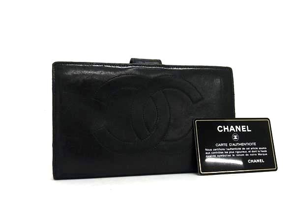 1円 CHANEL シャネル デカココマーク ラムスキン 二つ折り 財布 ウォレット 小銭入れ 札入れ レディース ブラック系 FV2931