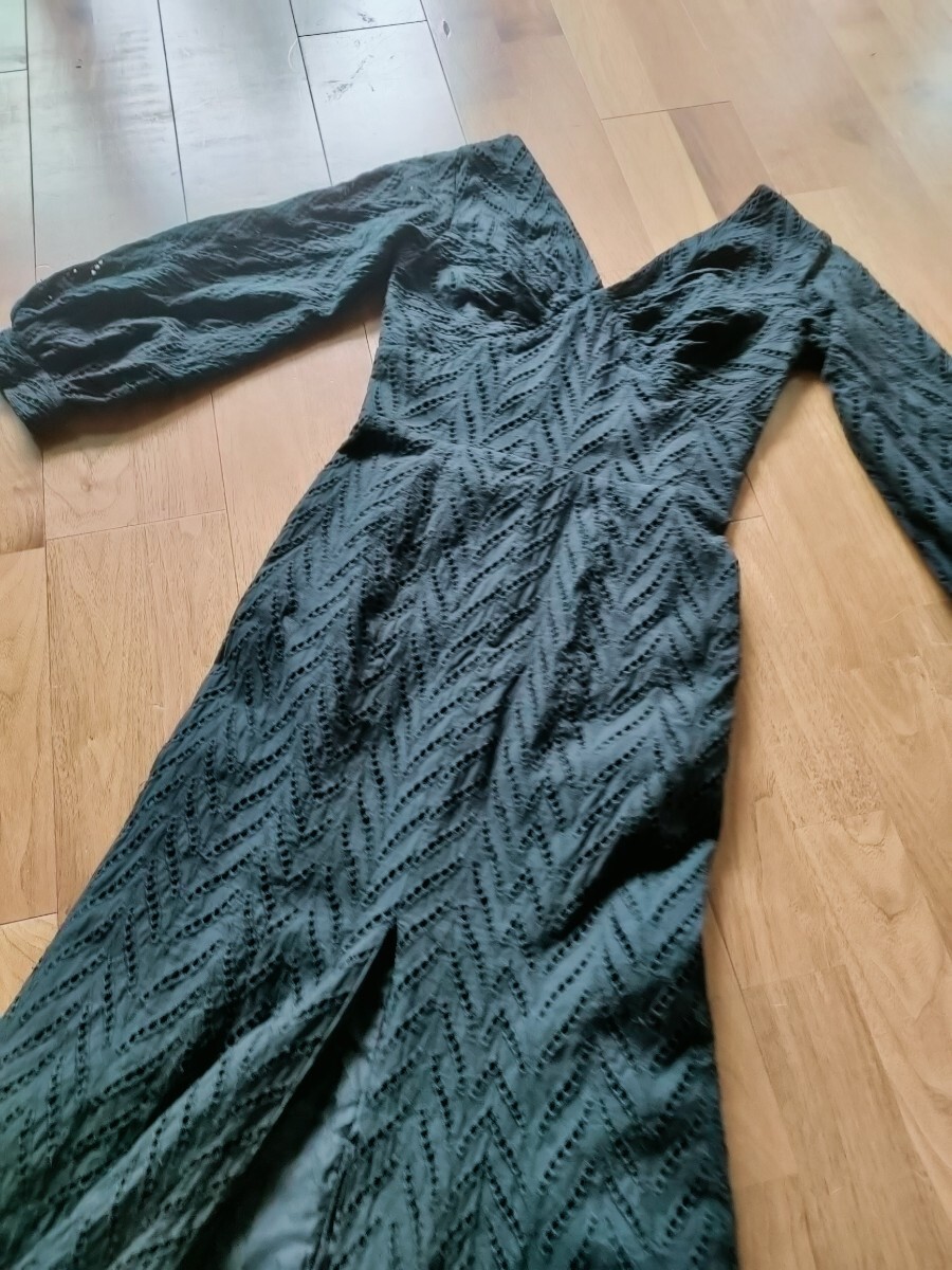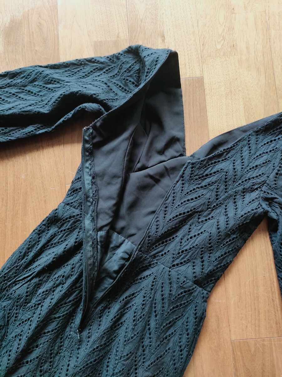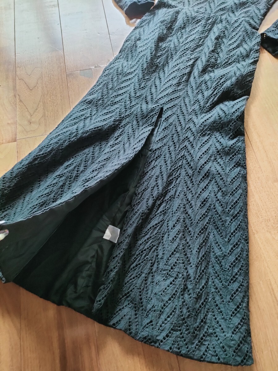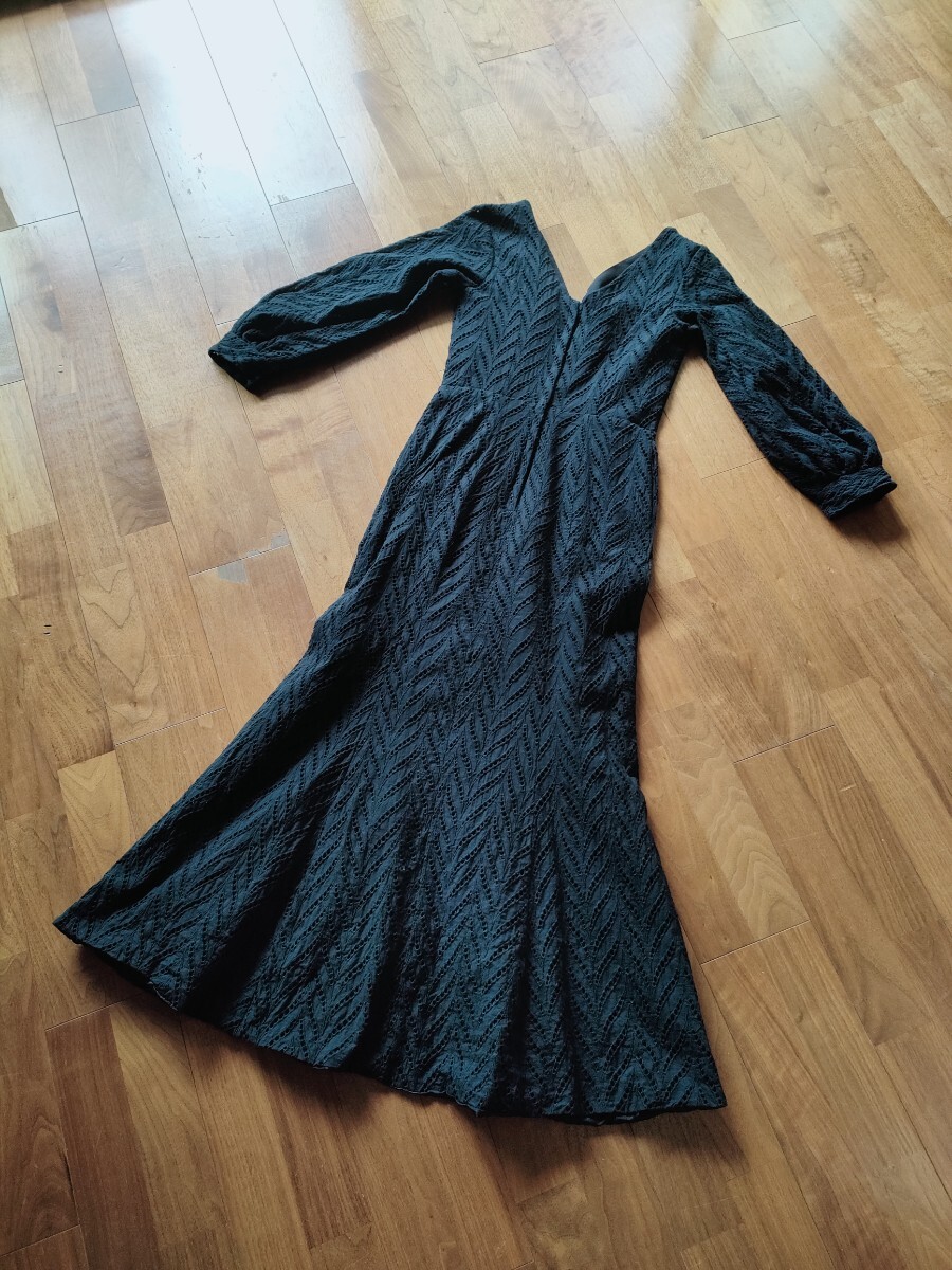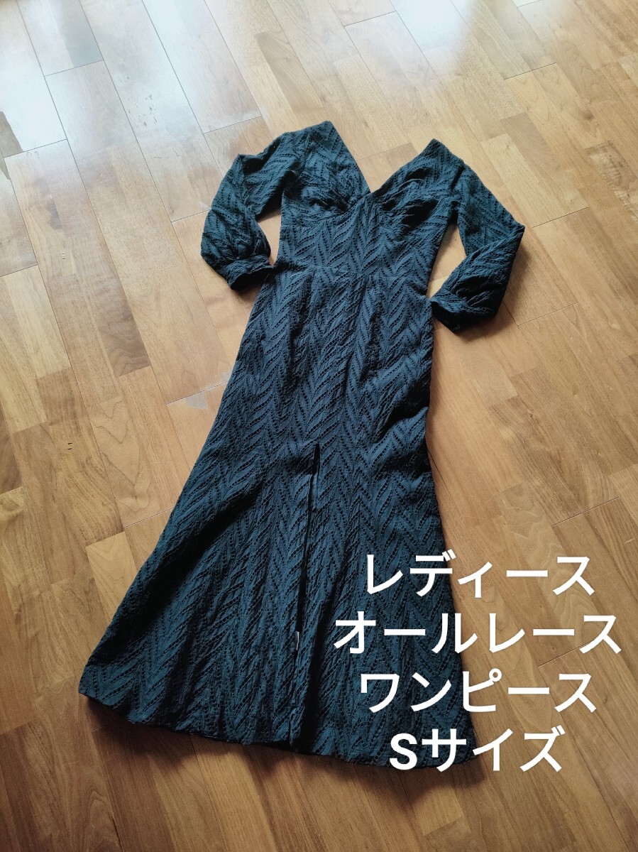 【デザイン】女性用 裏地付き バックチャック 長袖 前スリット マキシ丈ワンピース