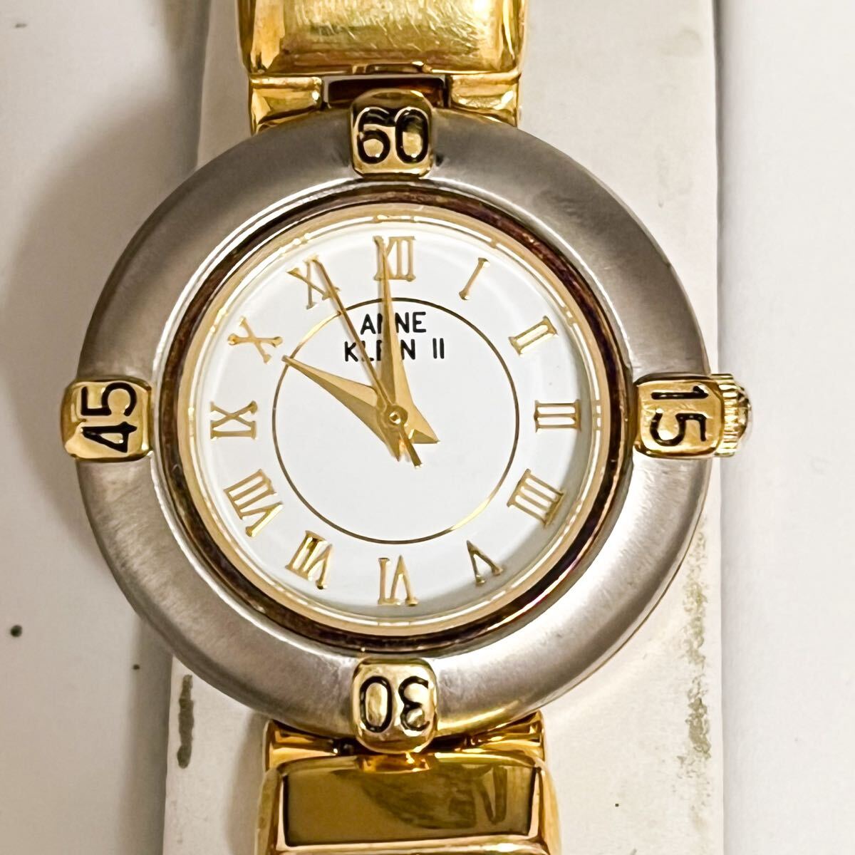 和854★ 箱付き ANNE KLEIN Ⅱ アンクライン クォーツ 腕時計 ウォッチ 3針 10/1847 ホワイト ゴールド レディース メタルバンド