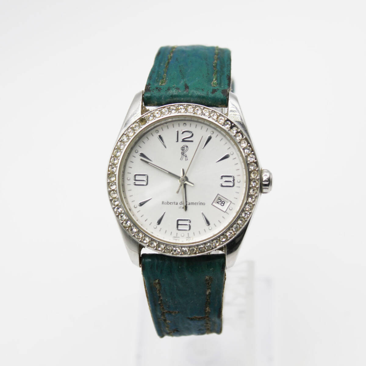 W251009-27 ROBERTA DI CAMERINO ロベルタディカメリーノ RC-7040 レディース腕時計 クォーツ デイト ジャンク 文字盤シルバー 石付き