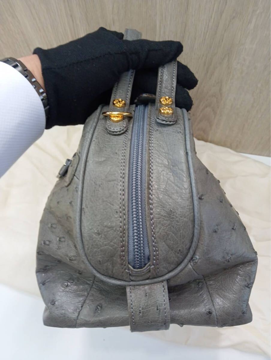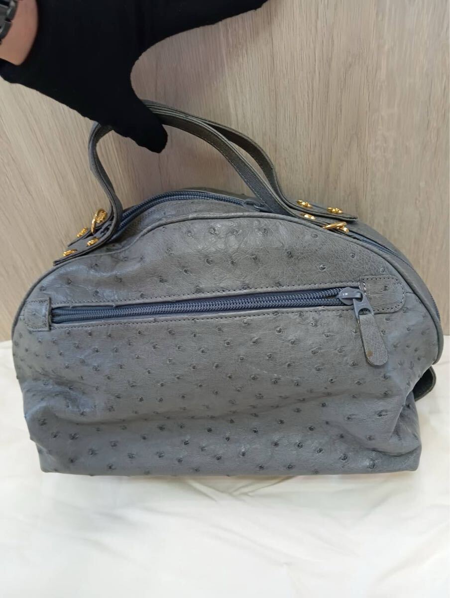 【中古品】 オーストリッチ ハンドバッグ レザー ショルダーバッグ ボストンバッグ 本革 現状品