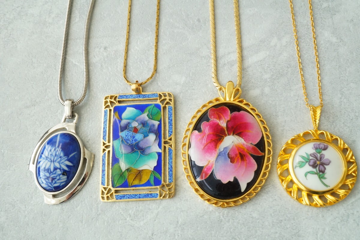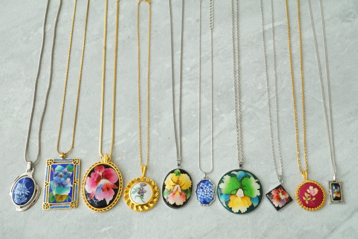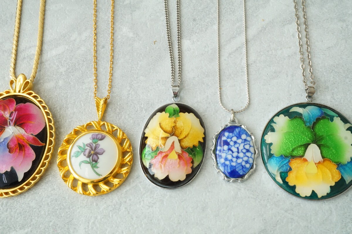 B750 七宝焼など ネックレス ペンダン 10点セット 陶器 焼き物 ヴィンテージ アクセサリー 大量 まとめて おまとめ まとめ売り