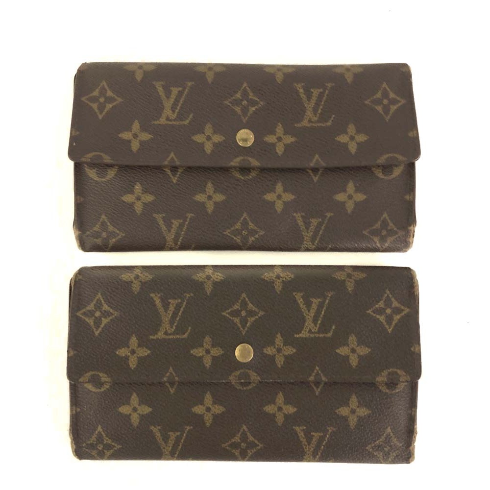 1円 LOUIS VUITTON ルイヴィトン レザー モノグラム ポルトトレゾール インターナショナル 長財布 2点セット ブラウン /ZX1156