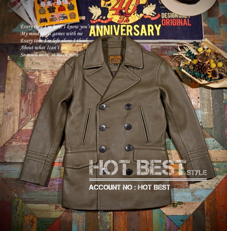1.7mmカウハイド 定番 740 海軍ピーコート Peacoatメンズ 革ジャン イタリアンレザー タンニンなめし 牛革 Y1249/S