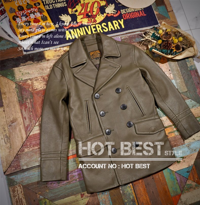 1.7mm厚のカウハイド(牛革)を使用した海軍ピーコートは、クラシックなミリタリーデザインと優れた耐久性を兼ね備えた一着です。