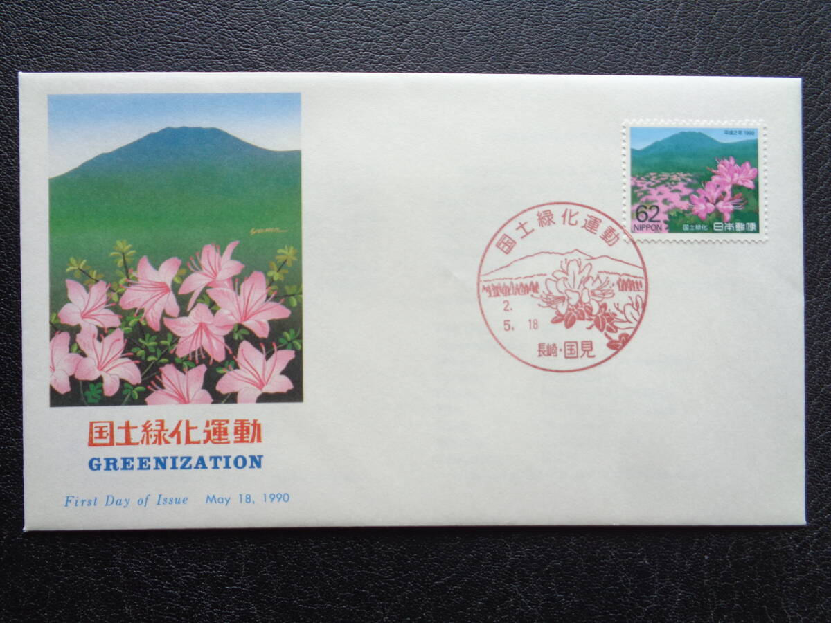 初日カバー     1990年     国土緑化   雲仙ツツジと雲仙岳