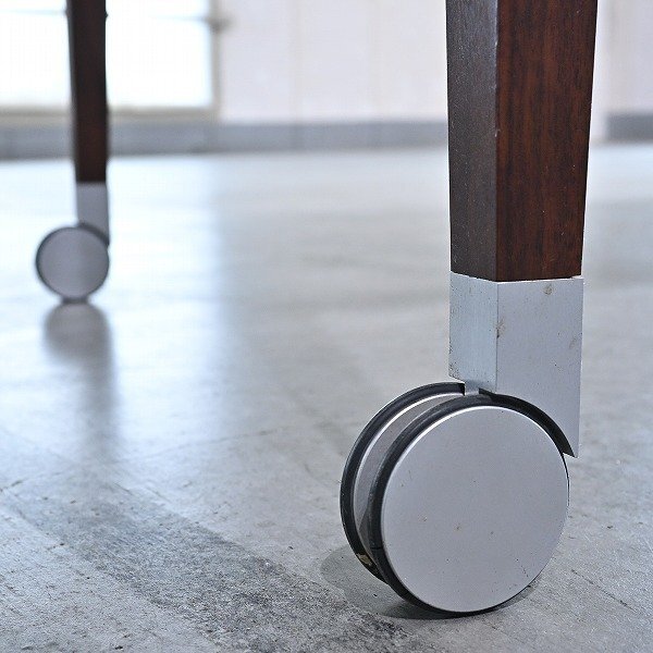 脚先にはキャスターが付いており、重厚な無垢材ながら移動がスムーズ。