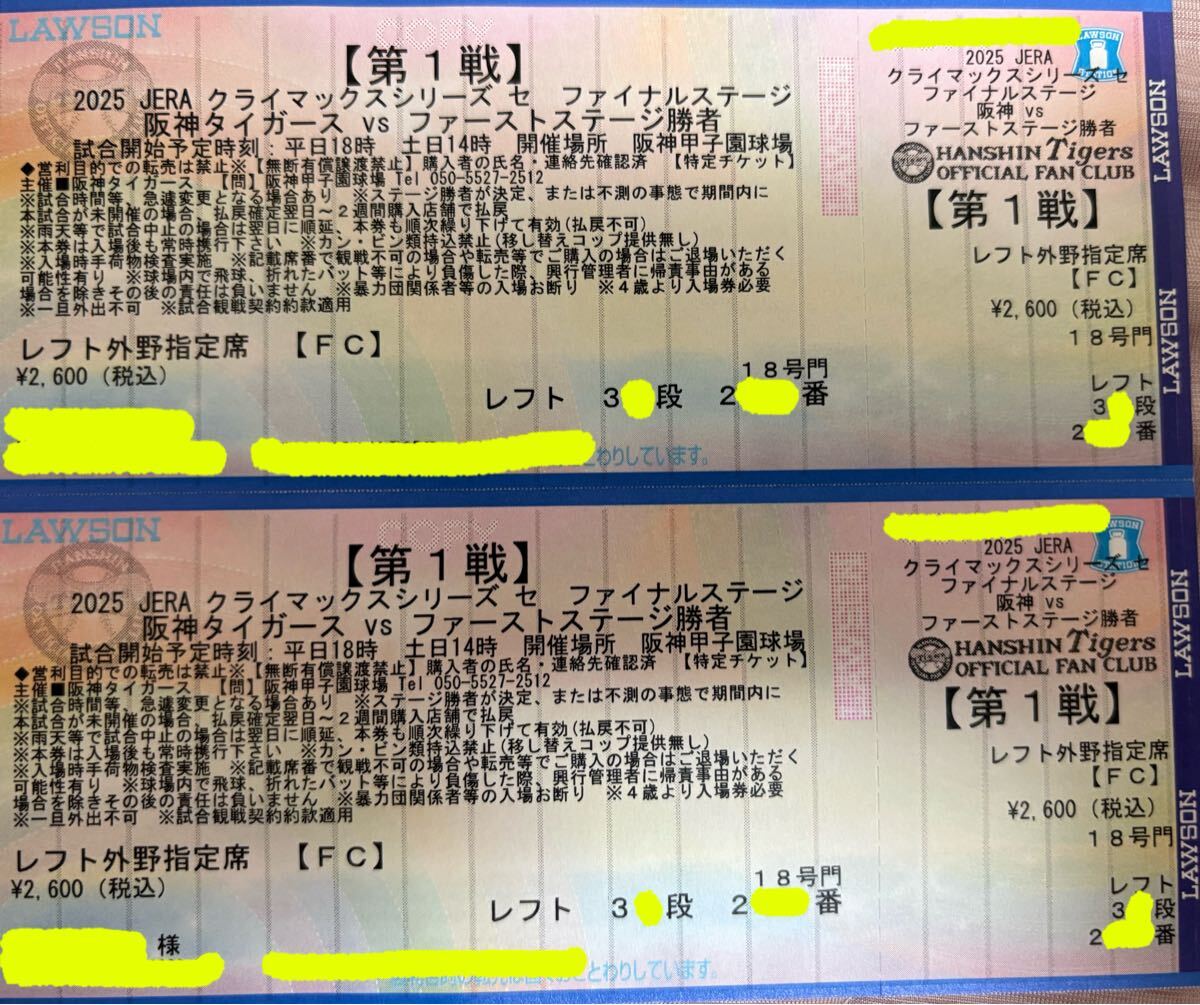 JERAクライマックスシリーズ セ・ファイナルステージ第1戦のチケットです。