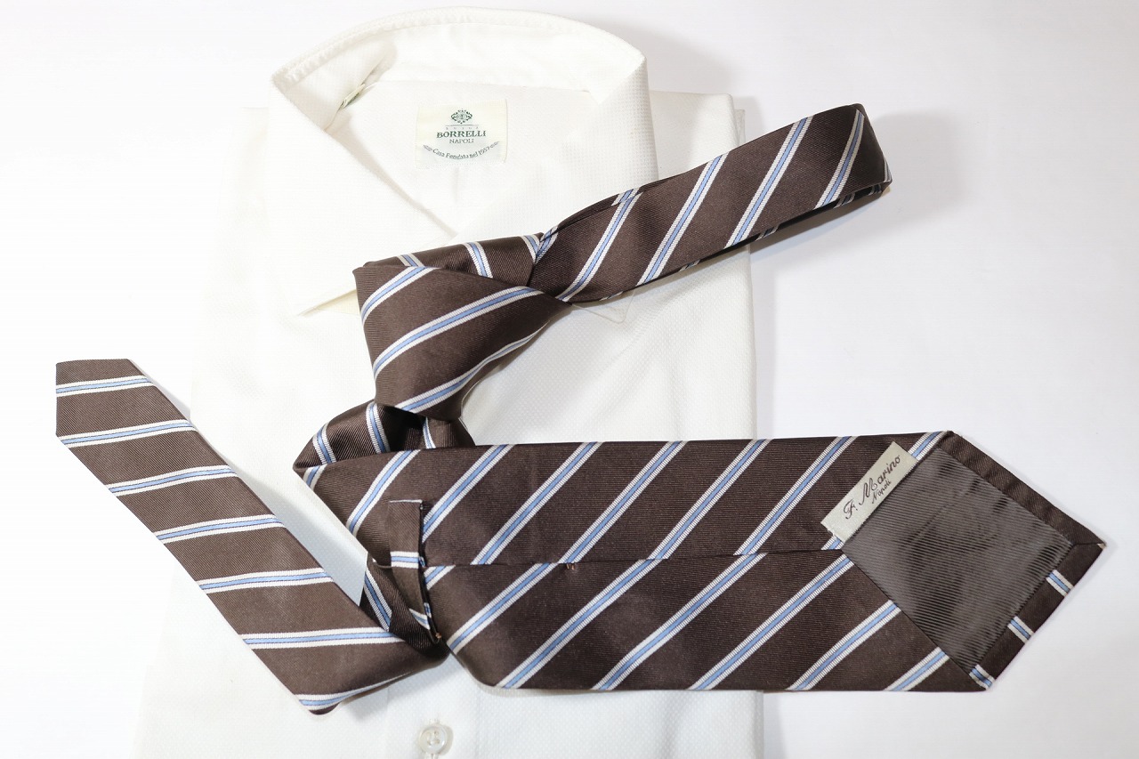 【伊】ls20489/F.マリーノ ナポリ極上ハンドメイドレジメンタルネクタイ