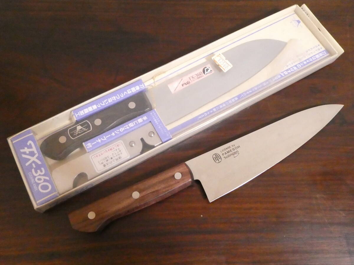◆商品名 ①料理包丁 2本 未使用品 ◆サイズ 箱入り 刃渡り:16.5㎝ 幅:5.0㎝ 箱なし 刃渡り:17.5㎝ 幅:4.5㎝ ※素人採寸です。 ◆商品状態・詳細 ・経年劣化による汚れ等があります(写真参照) ・長期保管品です |