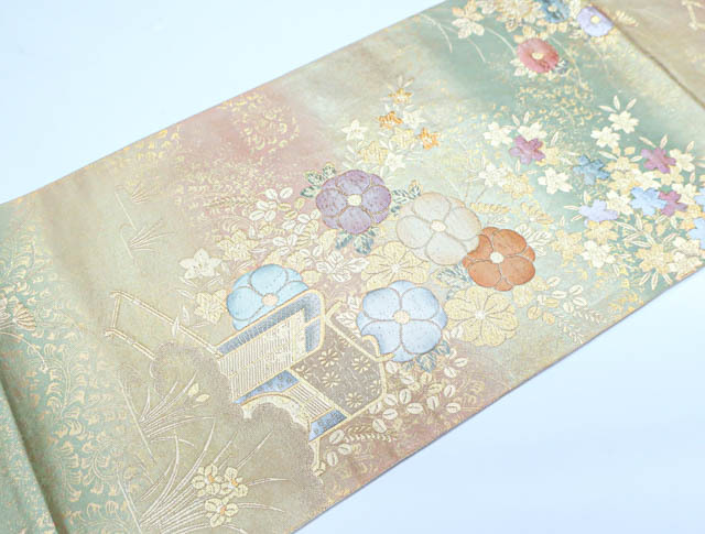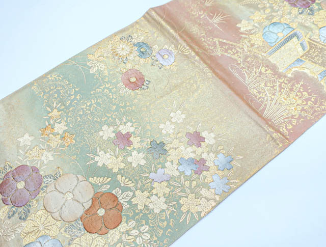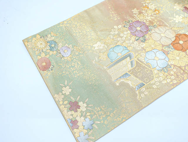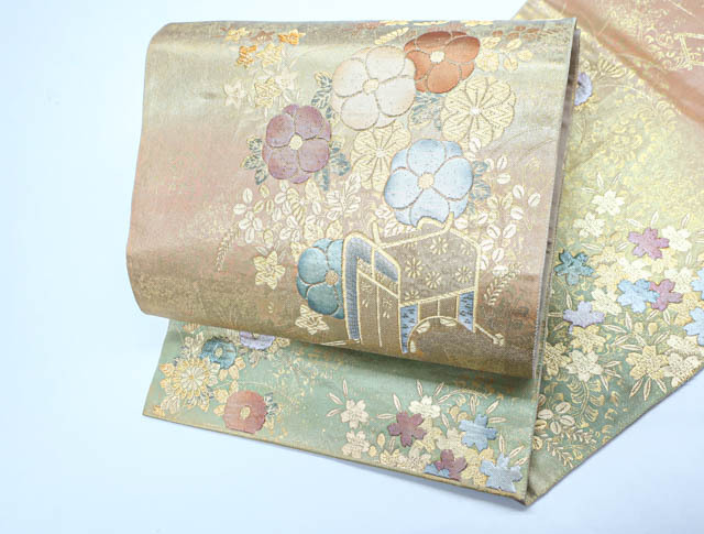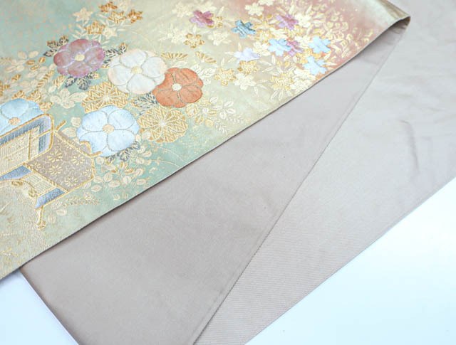 リサイクル商品のため、前柄から無地場に折れ山跡、裏地にシミがございます。 また、若干の使用感がございますが、着用可能なお品です。 地色は、金色×オレンジです。 1枚目の画像が近いお色かと思われます。 素材は正絹です。 |