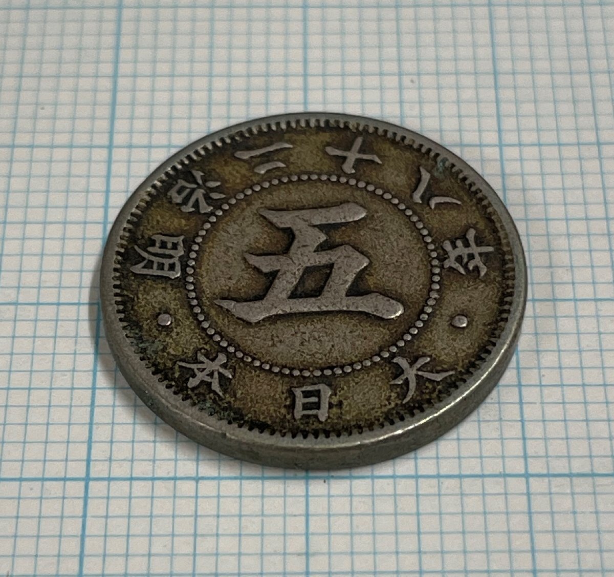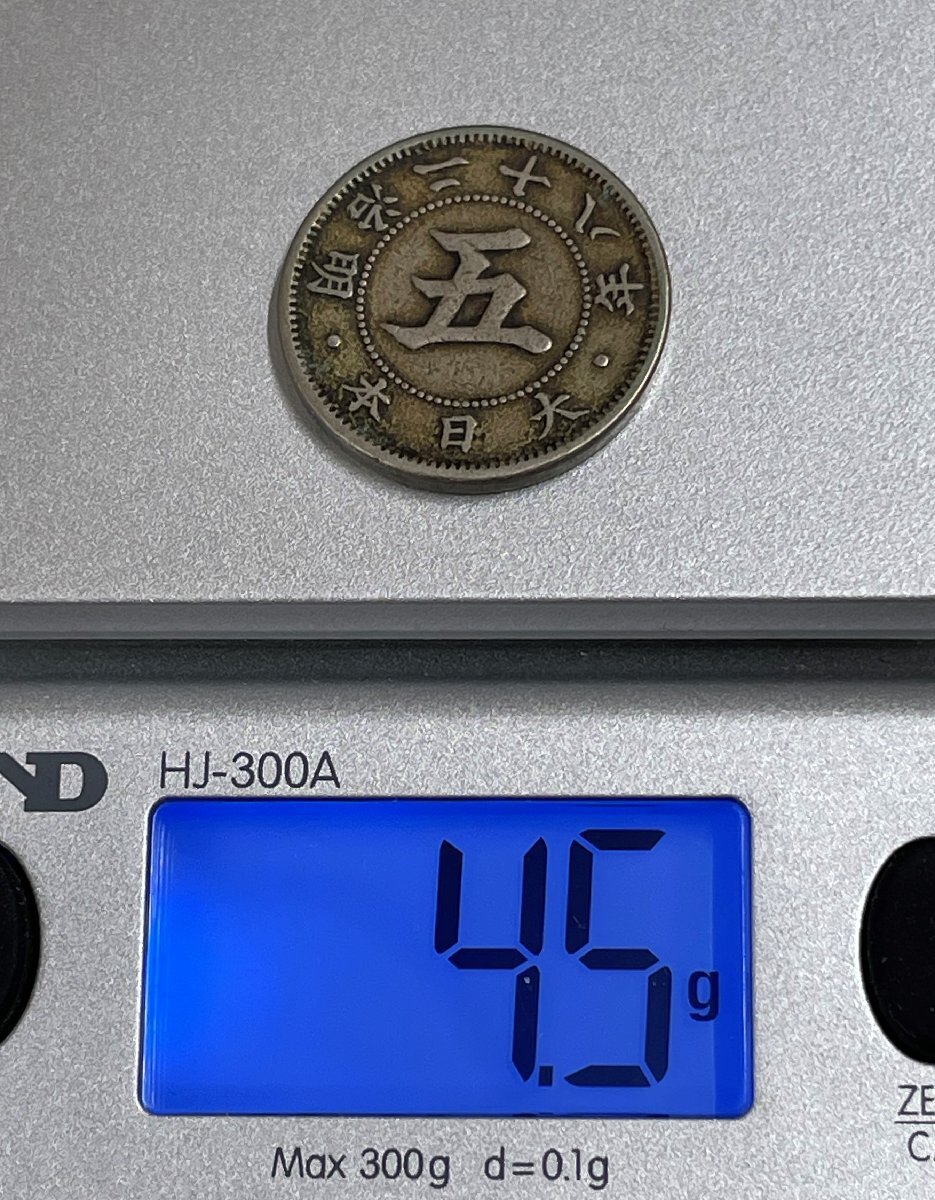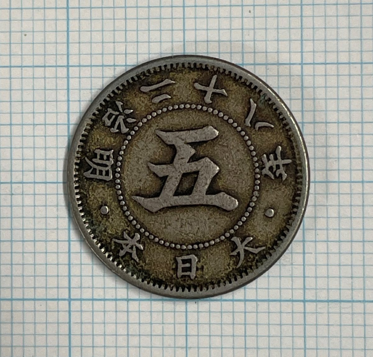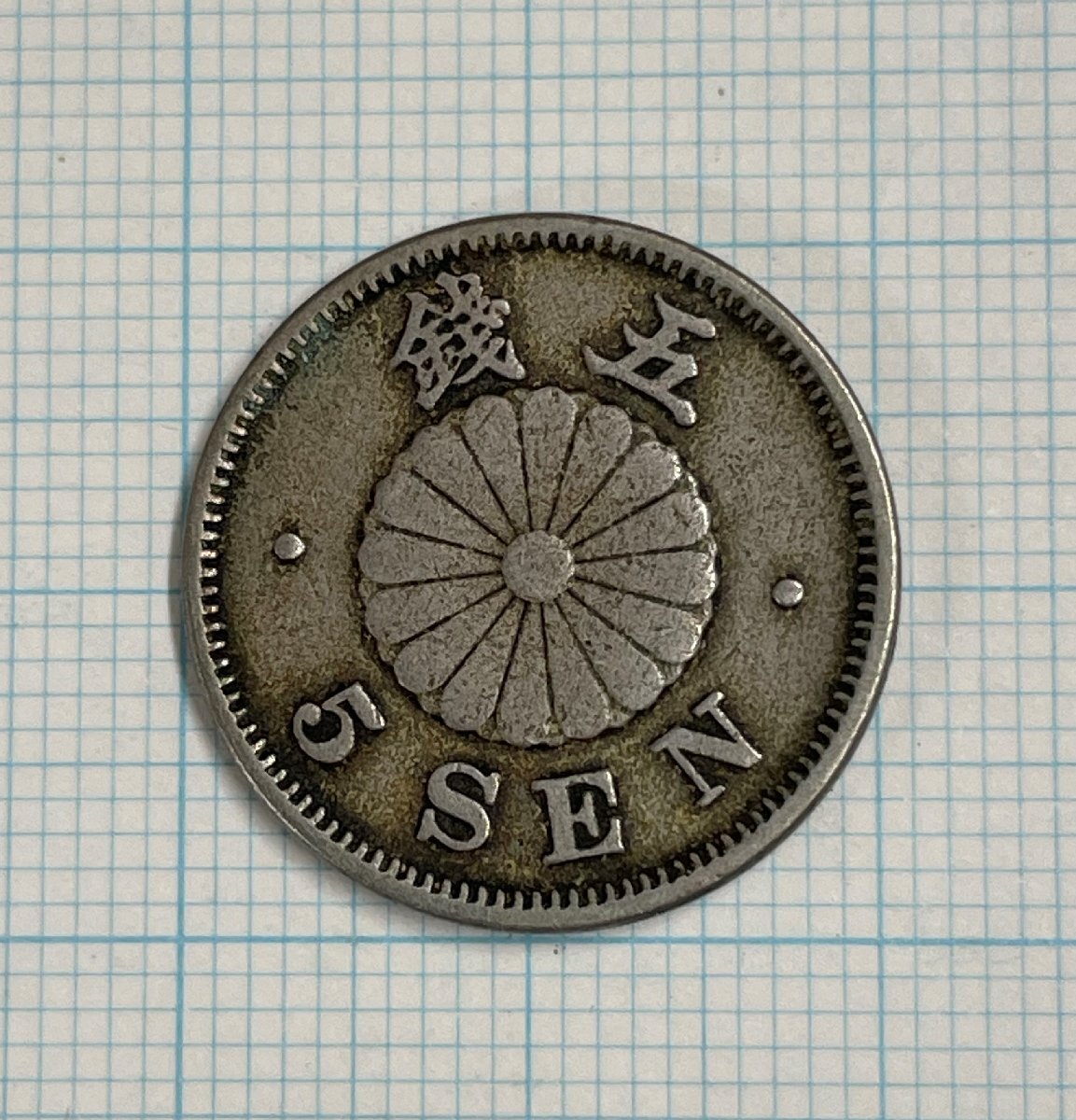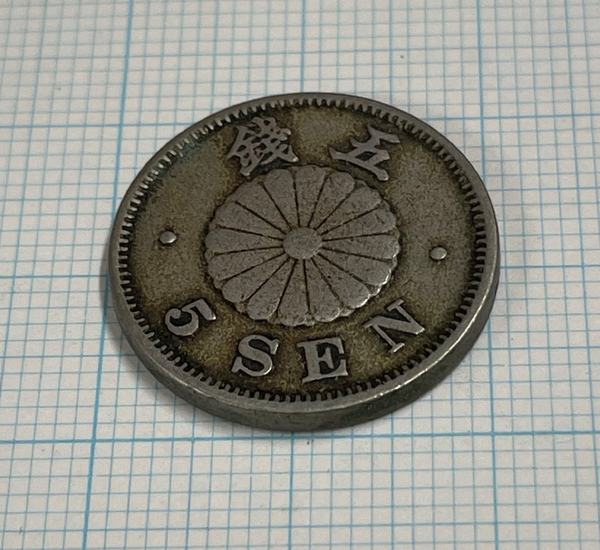●8407 菊5銭白銅貨 明治28年 特年・珍年号 〒1